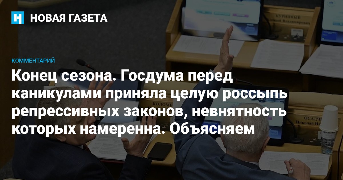 Говоря о принятых под занавес думского сезона запретительных и репрессивных законах, в основном обсуждают те из них, что касаются штрафов за «поиск экстремистского контента» в интернете — только что принятые Госдумой в третьем чтении без всяких изменений.