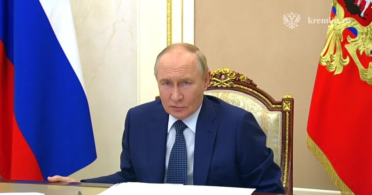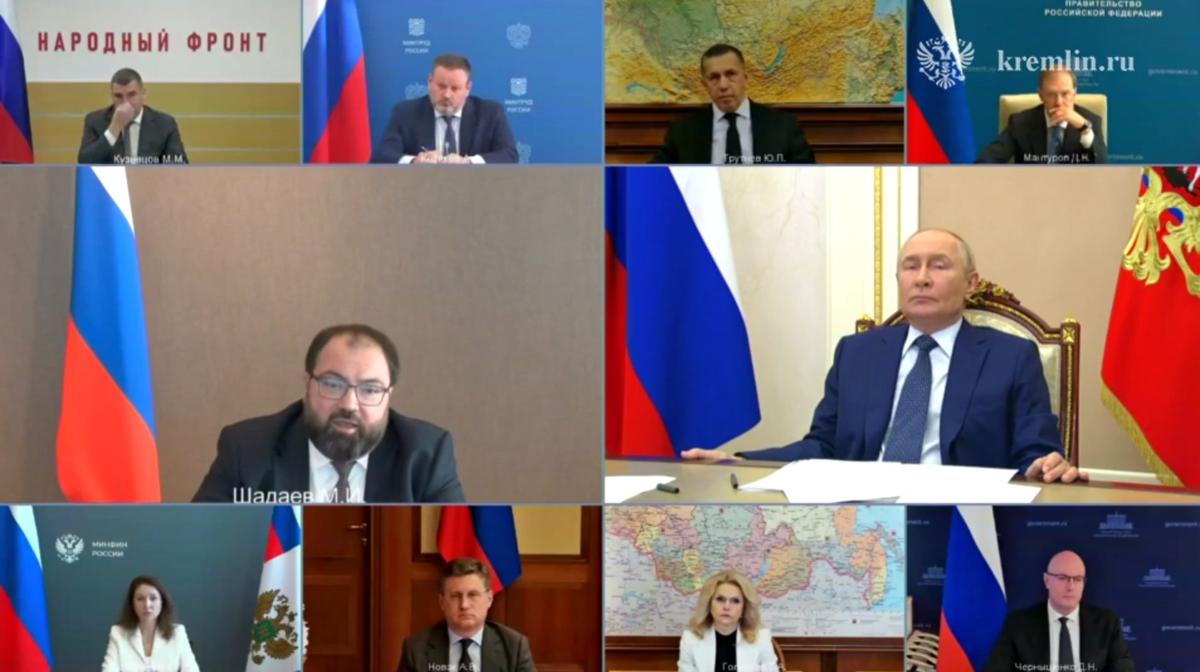 Кадр выступления Максута Шадаева на зум-совещании с президентом Путиным