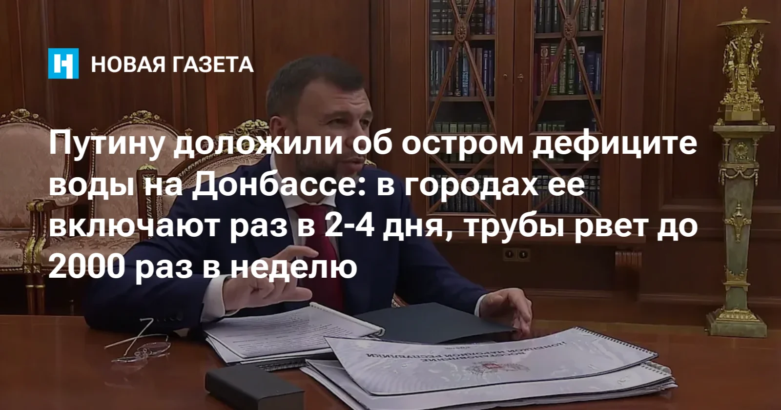 Губернатор присоединенный к России Донецкой народной республики Денис Пушилин на встрече с президентом Владимиром Путиным доложил ему об остром дефиците воды на Донбассе.