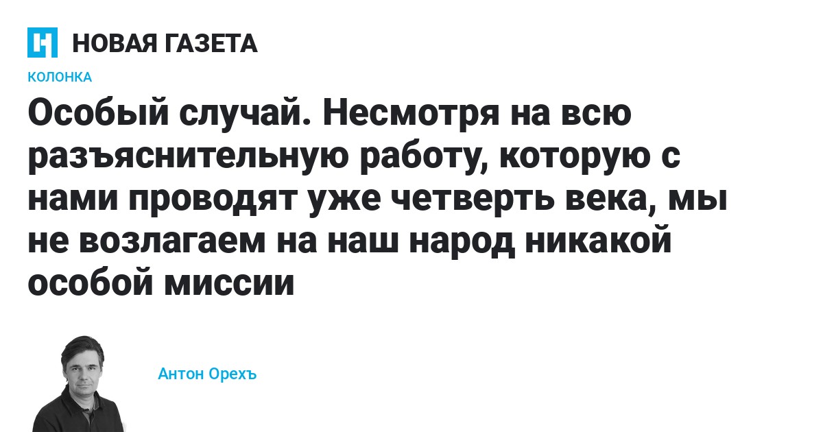 Почему я считаю это хорошей новостью? Потому что 61% опрошенных полагает, что русские — такой же народ, как и остальные. То есть все народы, все люди вообще — разные. И поэтому нет двух одинаковых людей и двух одинаковых народов, каждый человек и всякий народ мог бы считать себя особым. Но особым не в том смысле, который подразумевают идеология и пропаганда. Не такой «особый», который отличается от других в лучшую сторону.