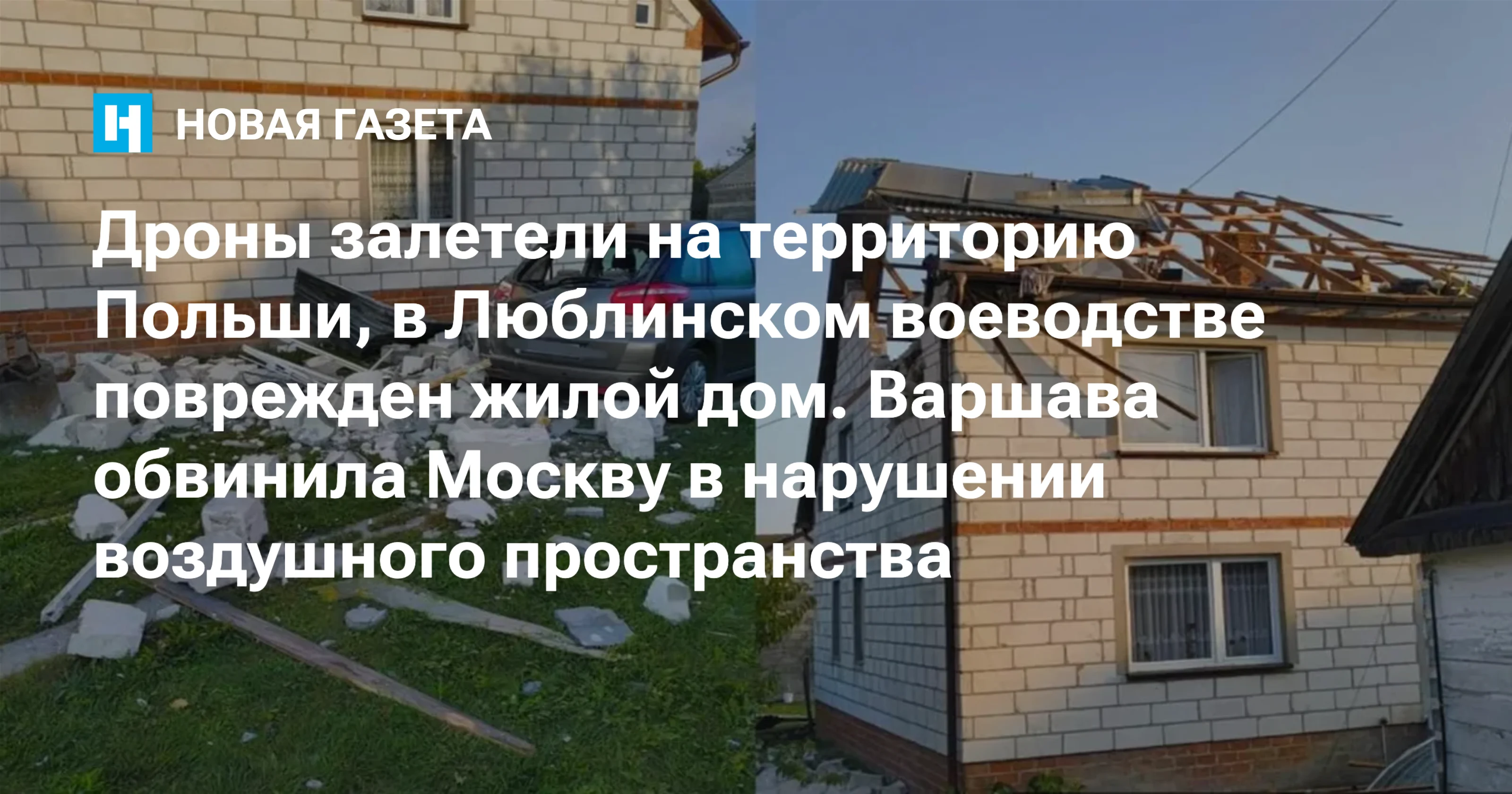 Один из беспилотников повредил жилой дом и автомобиль в Люблинском воеводстве, пострадавших нет, сообщил телеканал Polsat News. Неясно, упал ли сам дрон на здание, или речь идет об обломках этого дрона, отмечает телеканал.