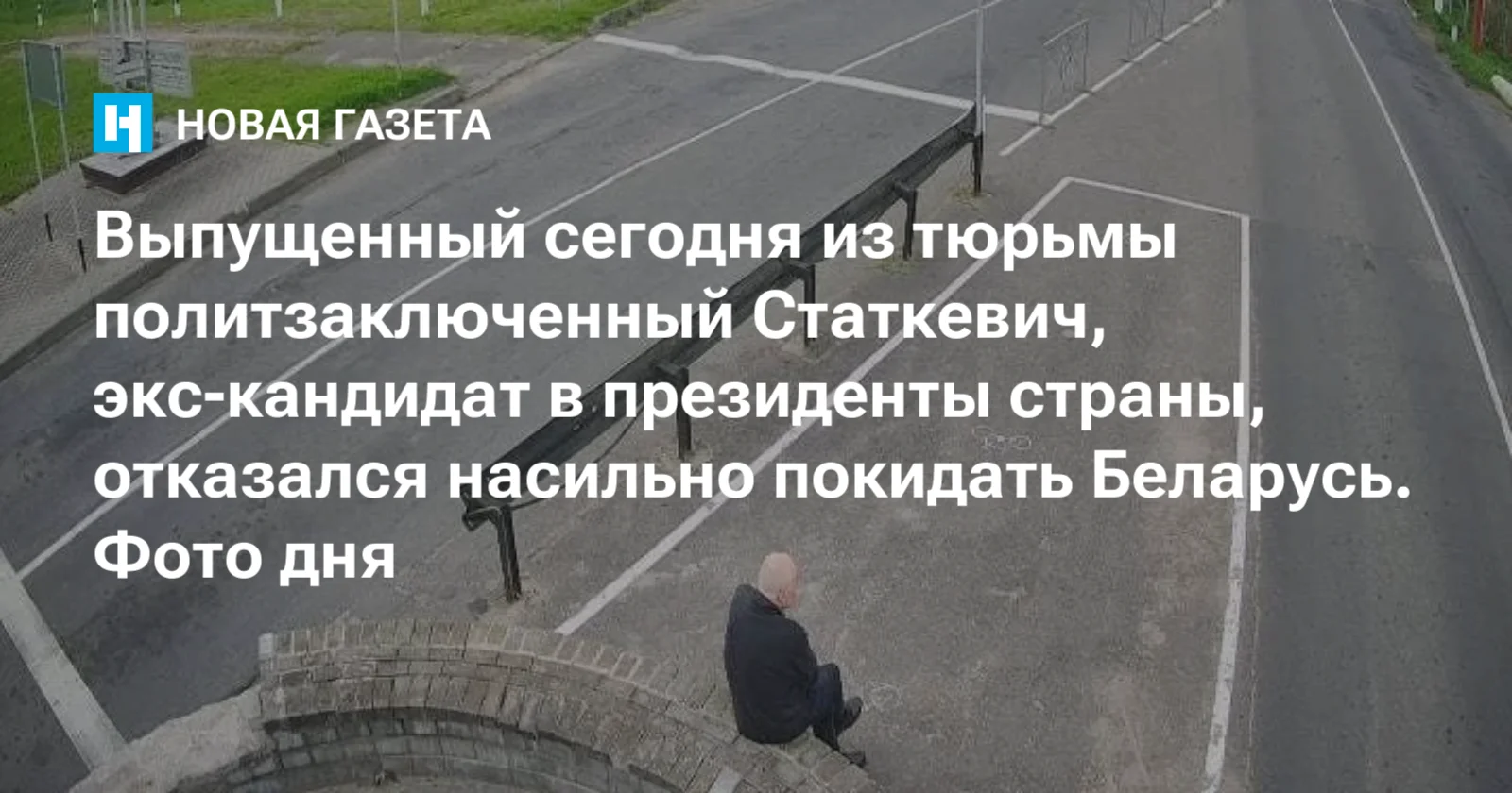 Это фотография с погранперехода — нейтральной полосы между Беларусью и Литвой. Человек, сидящий под камерой — вероятнее всего, политзек Николай Статкевич.
