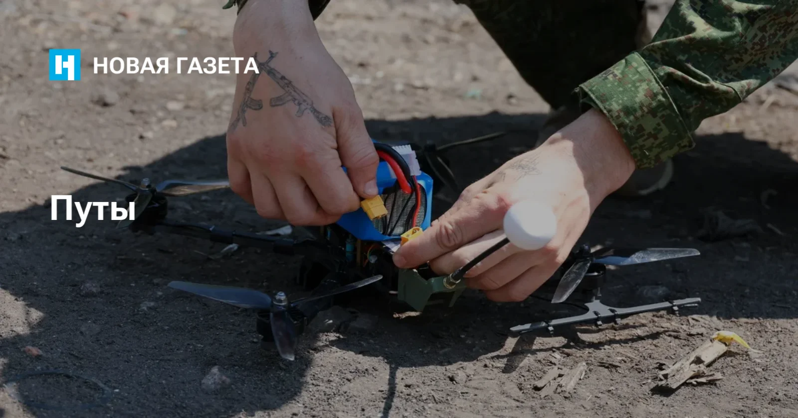 Выжженное поле усеяно тонкими нитями. Невозможно ступить и шагу, чтоб не запутаться в них. «Будем теперь ловить карася в оптоволокно. Вон, тянет за собой рыбак», — комментирует за кадром военный, снимающий на видео кабель, который прицепился к ноге сослуживца.
