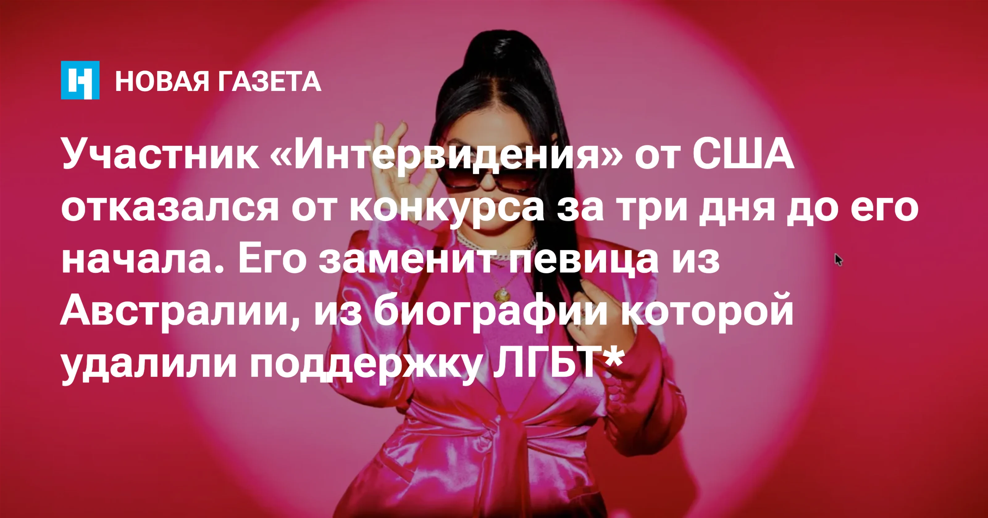 В пресс-службе «Интервидения» рассказали, что американца на конкурсе заменит певица из Австралии Vassy.