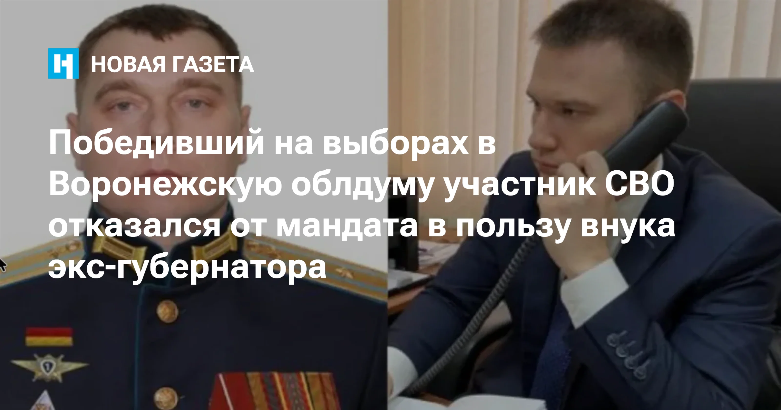 Участник военных действий в Украине Владимир Евсюков прошел в Воронежскую областную думу по партийному списку «Единой России», однако почти сразу отказался от своего мандата в пользу единоросса Владислава Новомлинского, внука бывшего губернатора региона Ивана Шабанова. О «рокировке» пишет «Блокнот — Воронеж».