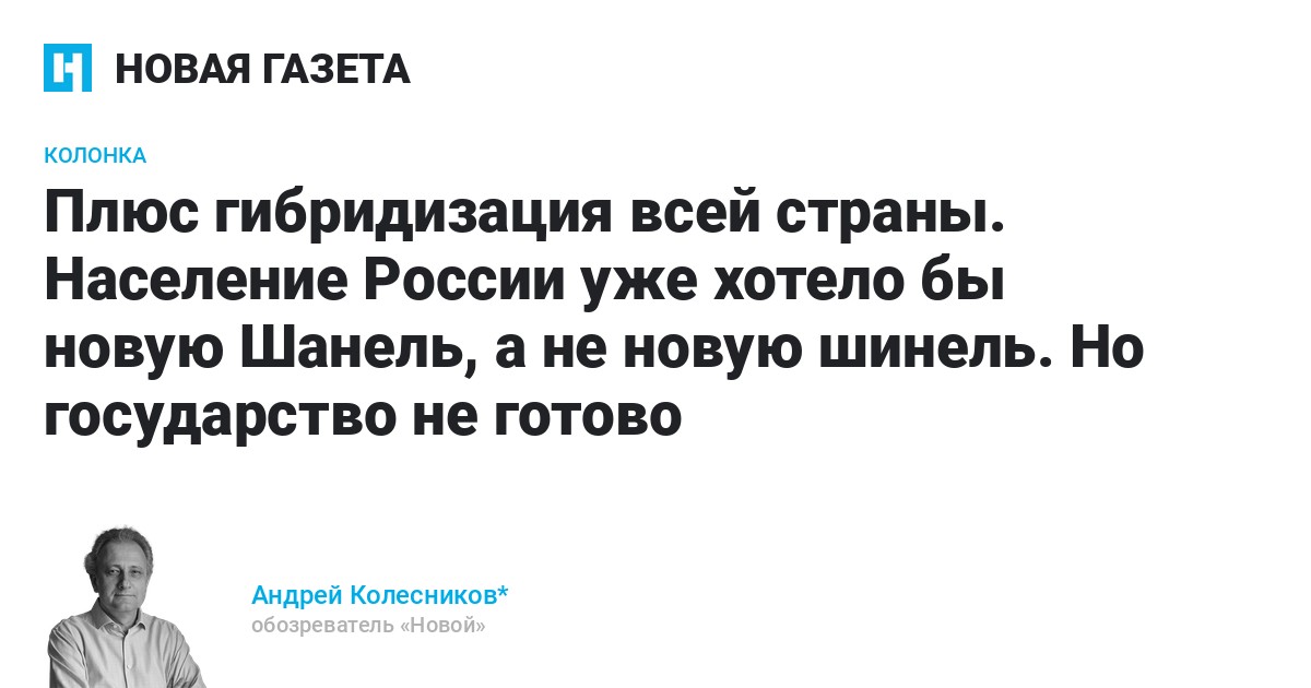 Здесь есть психологическая ловушка: население в массе своей хотело бы новую Шанель, а не новую шинель. Но пока есть возможность, государство будет воспринимать граждан России как человеческий материал и источник денег. Буквальное воплощение метафоры о людях как новой нефти.