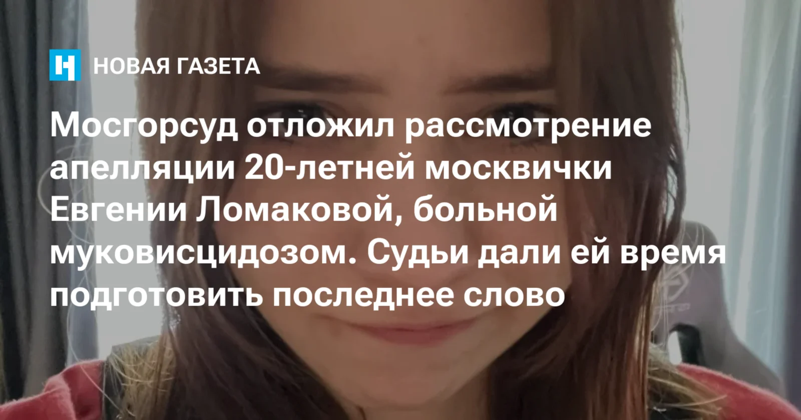 «Сейчас стоит вопрос, буду ли я жить или нет. У меня редкое генетическое заболевание. Прогрессирует легочная недостаточность. В легких формируется гнойная мокрота, это сложно остановить и мое состояние можно поддерживать только терапией. С муковисцидозом долго не живут. Мне очень страшно ехать в колонию, не знаю доеду до туда или нет, для меня это будет смертными приговором», — сказала Ломакова на прениях.