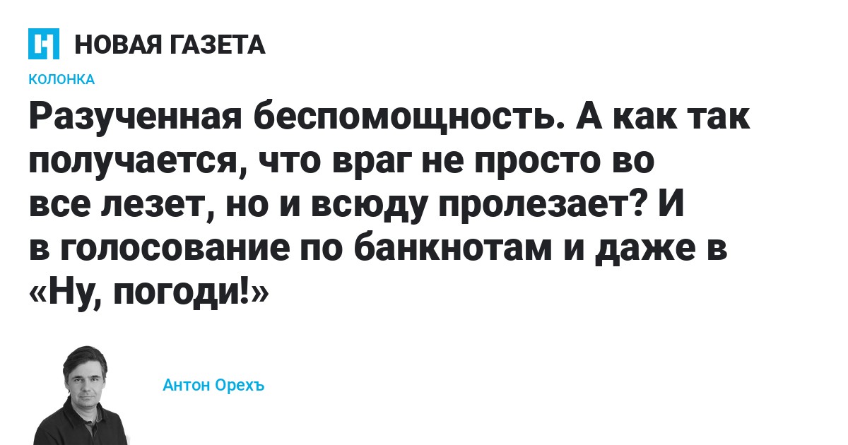 Обычно выражение «выученная беспомощность» применяют к рядовым гражданам, «простому» народу, который смирился с происходящим, считает, что в правительстве не дураки сидят, что от нас ничего не зависит, что повлиять ни на что невозможно и даже пытаться смысла нет. Но выученная беспомощность бывает не только у населения.