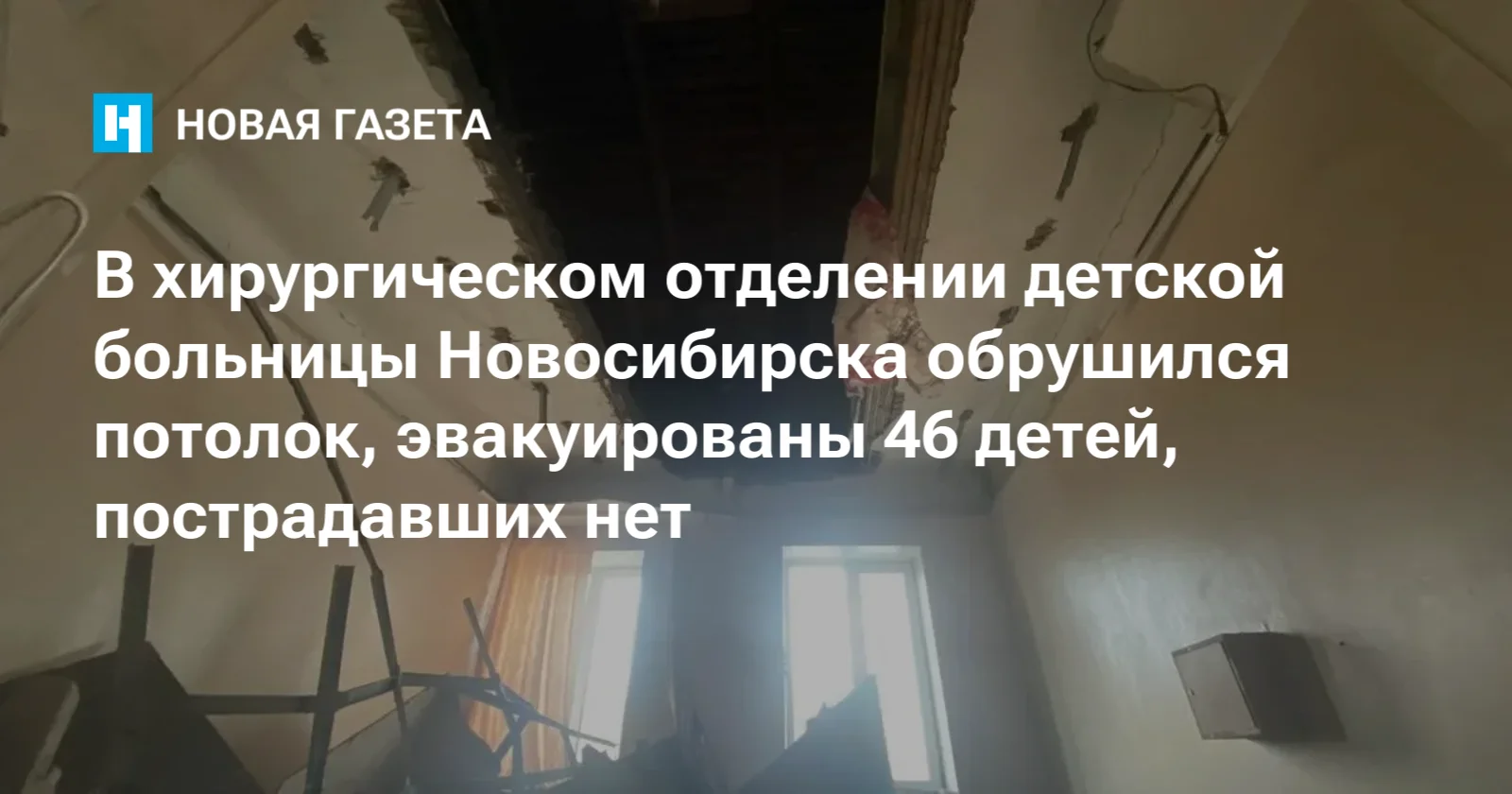 На третьем этаже детской больницы №1 Новосибирска рухнул потолок хирургического отделения. 46 детей эвакуировали, сообщила региональная прокуратура. Пострадавших нет. Возбудили уголовное дело.
