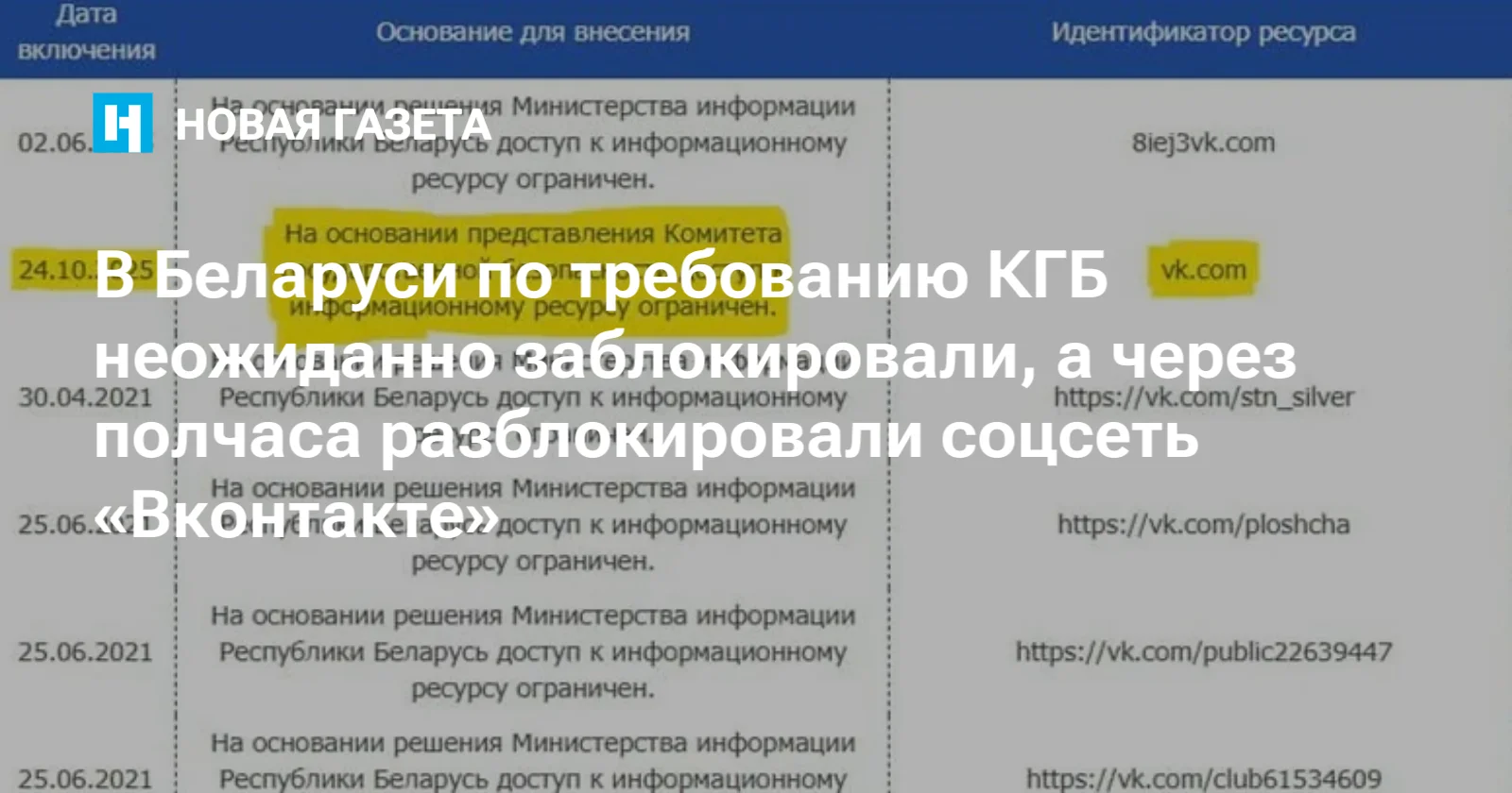 Крупнейшая российская соцсеть от «Мейл.ру» — VK — действительно была заблокирована на всей территории Беларуси, что подтверждалось записью в национальном реестре запрещенных ресурсов.