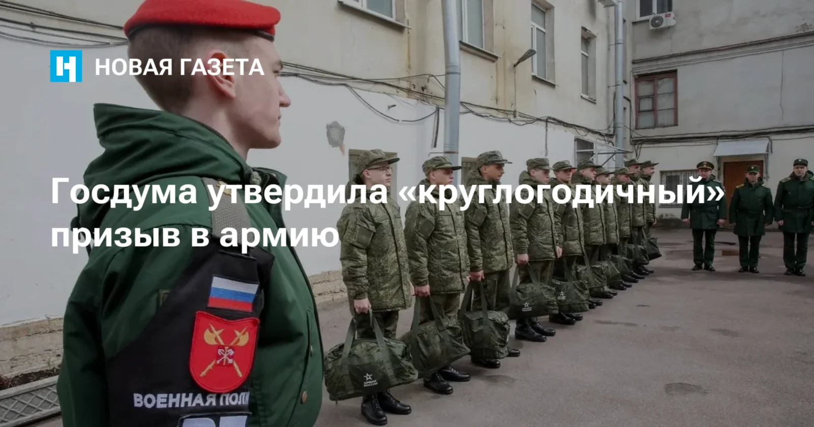 Госдума в третьем чтении приняла закон о круглогодичном призыве — с 1 января по 31 декабря.