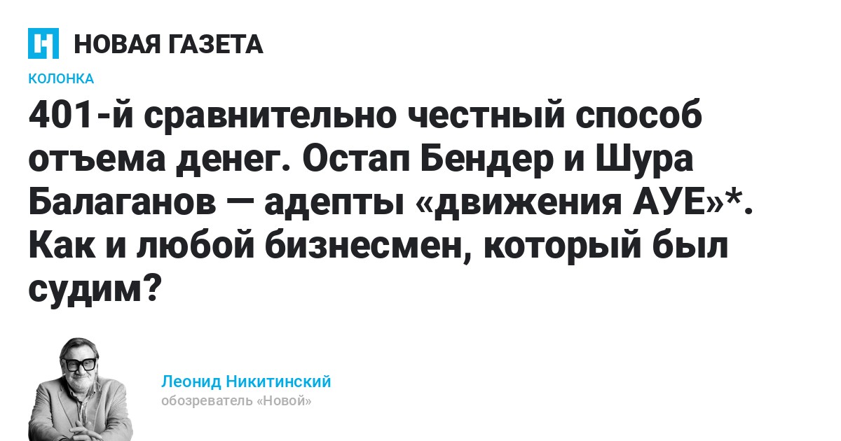 Остап Бендер и Шура Балаганов, несомненно, примерно таких взглядов и придерживались, когда образовали вместе с Паниковским и Козлевичем подвижную «ячейку» АУЕ.