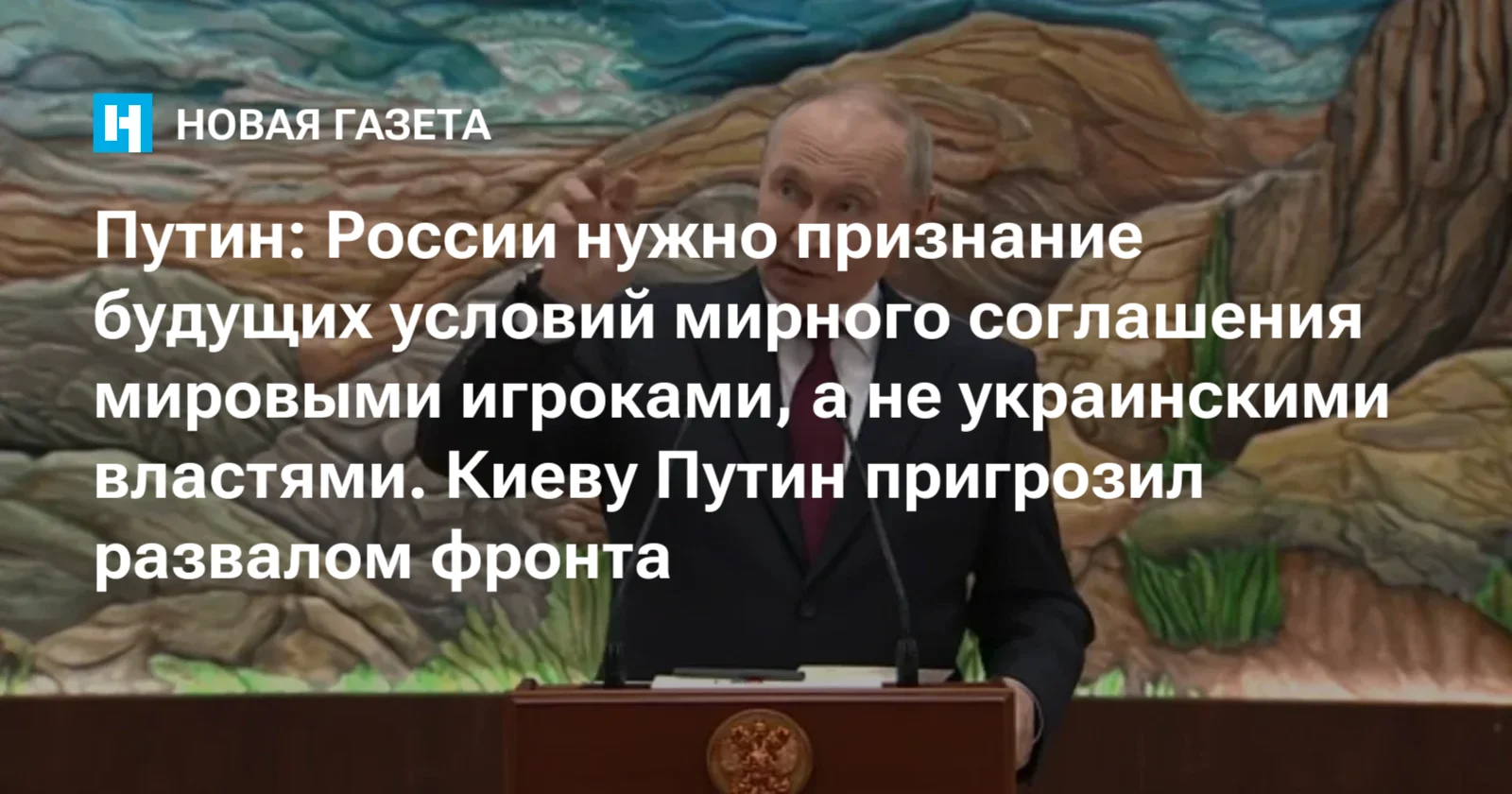 Нынешним украинским властям Путин отказал в легитимности (снова напомнив, что с мая 2024 года подошел к концу президентский срок Владимира Зеленского) и объявил, что с Киевом сейчас «бессмысленно» подписывать какие-либо документы.