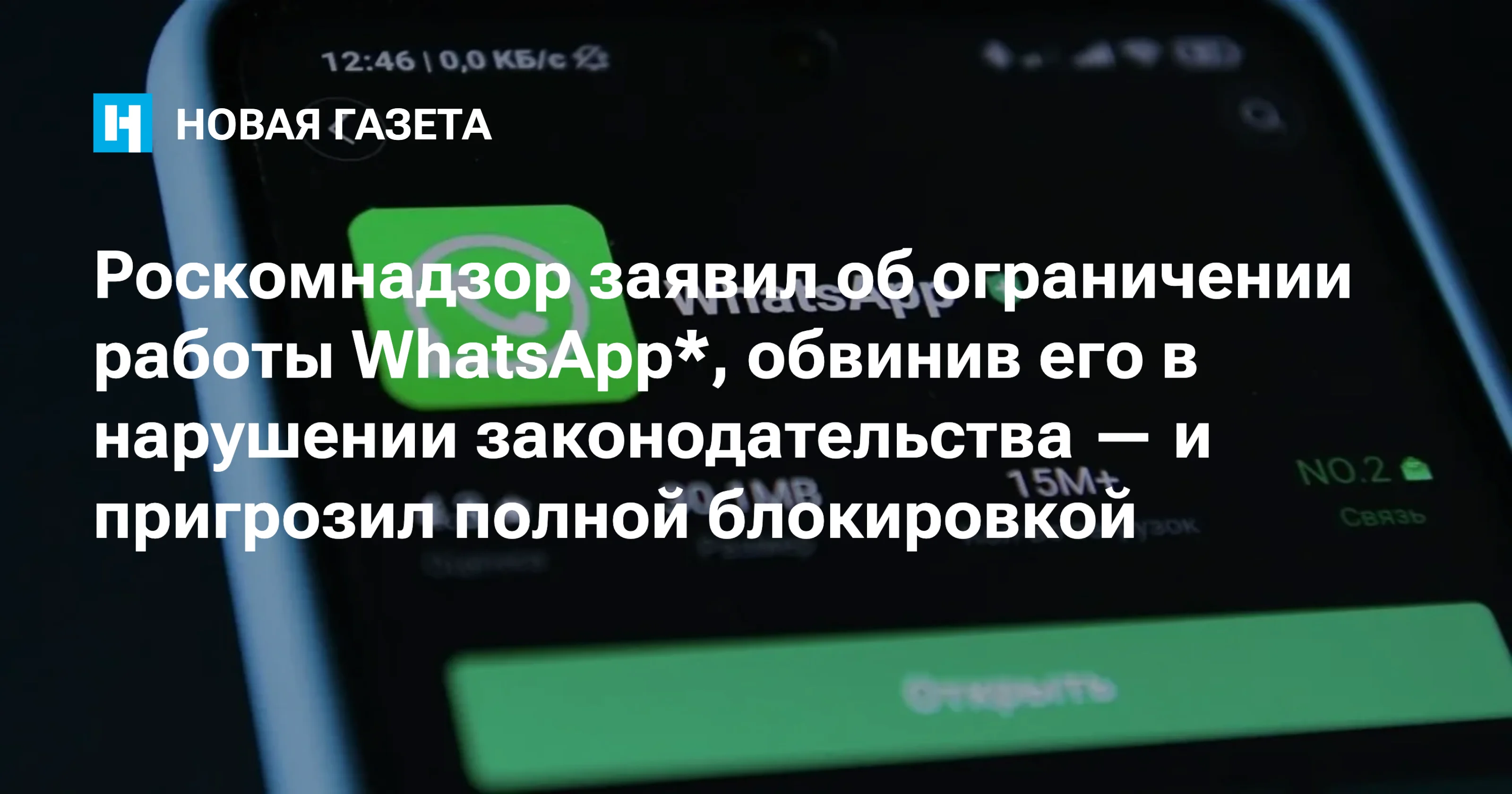 Роскомнадзор заявил об ограничении работы WhatsApp*, обвинив его в нарушении законодательства — и пригрозил полной блокировкой