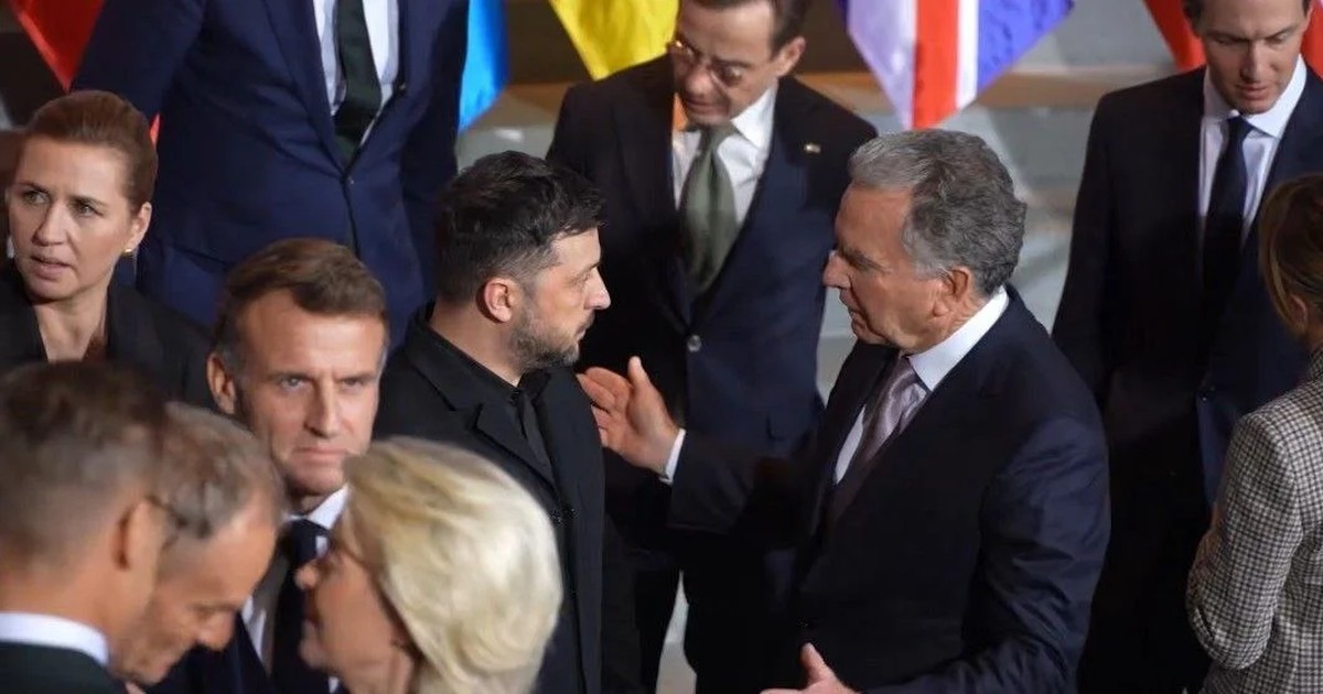 Совместная фотография лидеров стран ЕС на переговорах в Берлине, справа от Зеленского — Уиткофф и Кушнер. Фото: твиттер президента Макрона