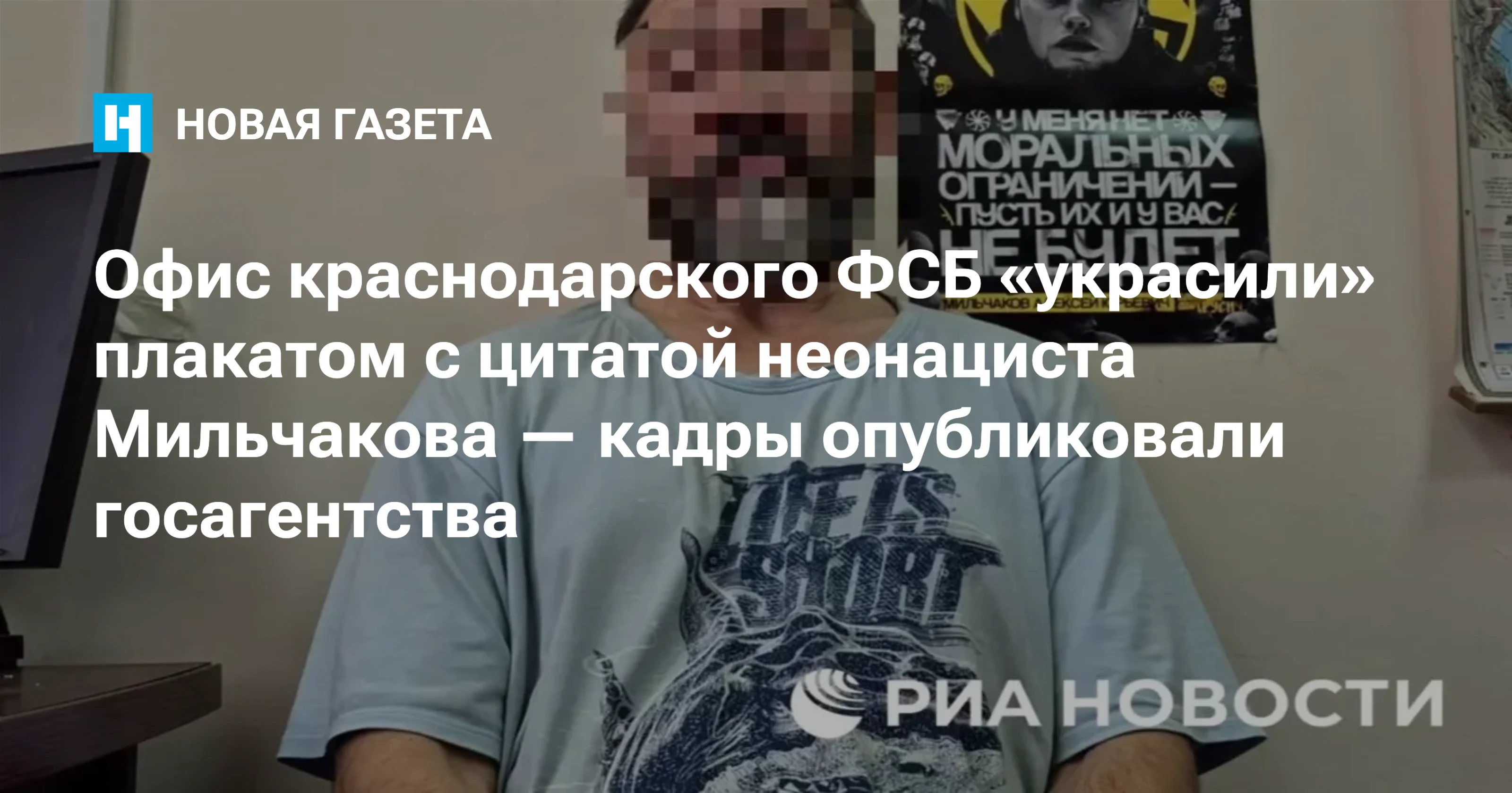 В ролике, переданном Центром общественных связей ФСБ, на стене виден постер со словами