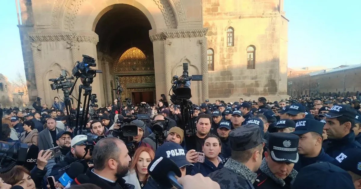 В священном для каждого армянина Первопрестольном Святом Эчмиадзине, где расположена резиденция католикоса Гарегина II, собрались сторонники премьер-министра Никола Пашиняна, которые требовали отставки предстоятеля Армянской апостольской церкви. Но там же собрались и прихожане, выступавшие в поддержку руководства ААЦ.