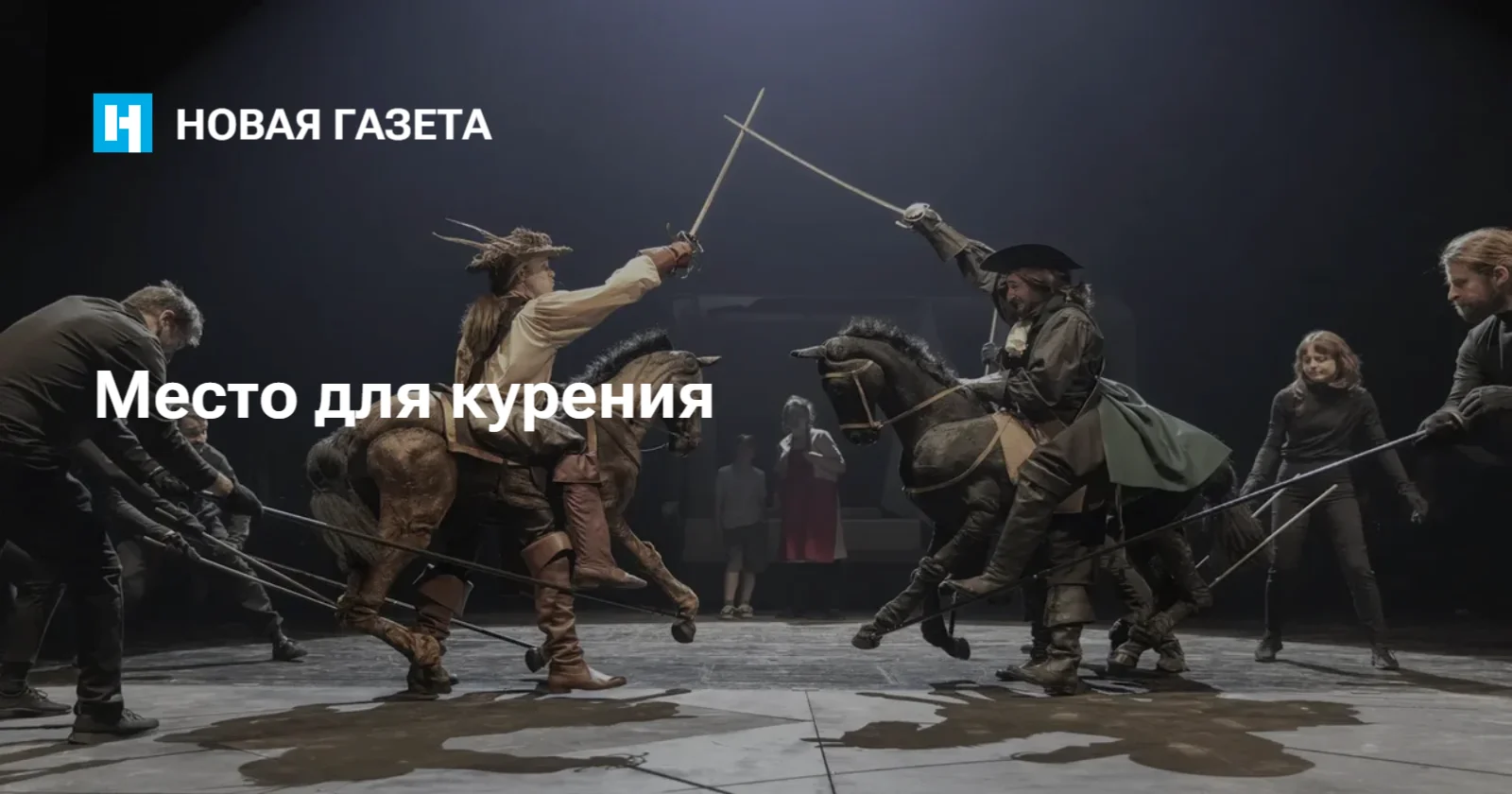 То есть все курящие артисты в затакте «Трех мушкетеров» Дмитрия Крымова на сцене затягиваются не по-детски упоительно. Они в черных трико, сцена — черный кабинет, так что огоньки, которые сперва принимаешь за звездочки, вспыхивают как бы в космосе. Дети в восторге — судя по всему, здесь можно все, что нельзя.