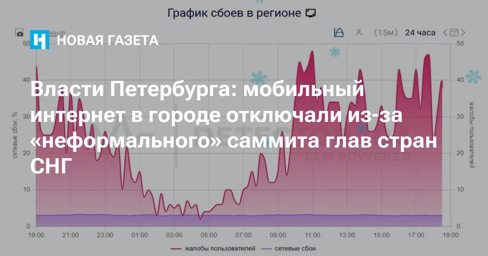 «В Санкт-Петербурге проходит саммит ЕАЭС и встреча лидеров стран СНГ. В целях безопасности в Центральном районе города возможны отключения мобильного интернета»,