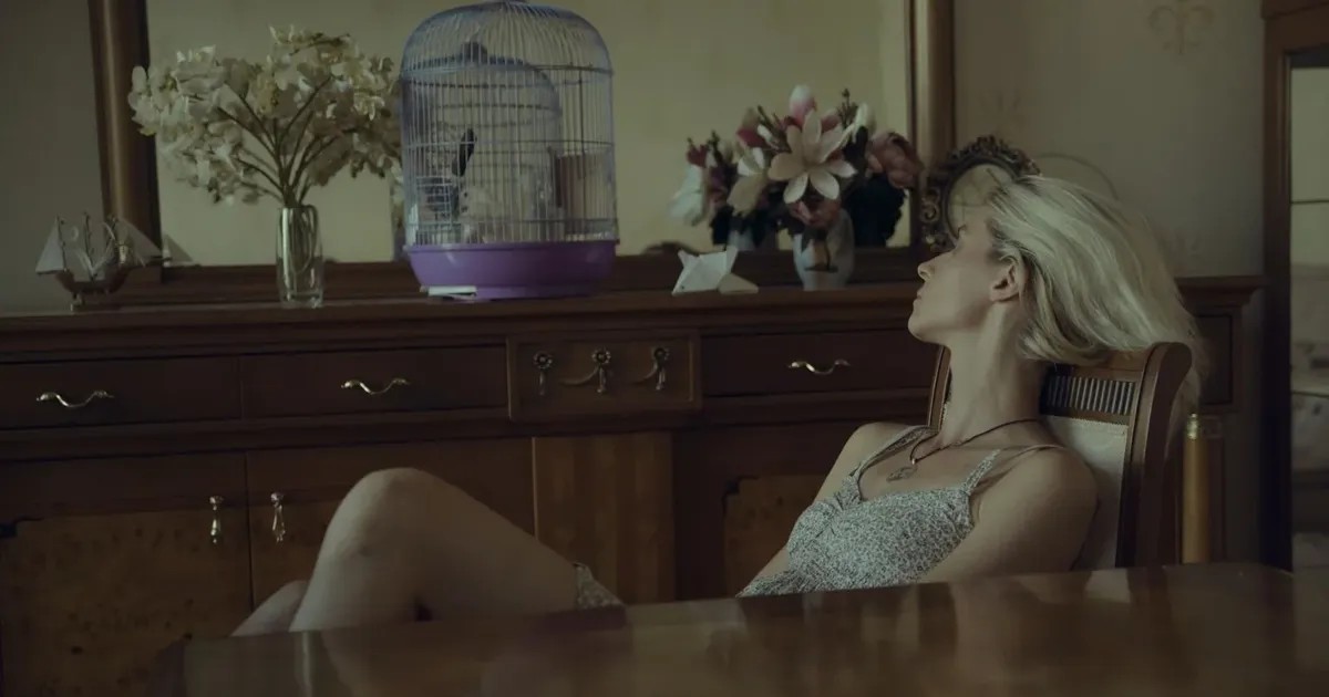 Близость случается — утешение нет. Девушку преследует образ другого мужчины. Она возвращается домой и убивает птицу, поставив клетку в наполняемую водой ванну. В финальном кадре мы видим героиню сидящей на диване. Она кладет белокурую голову на плечо своему фантомному мужу или просто любимому человеку.