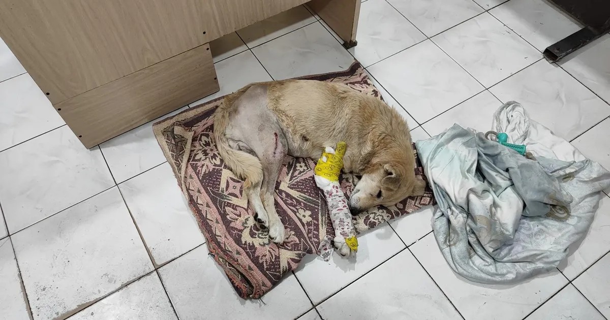 Ее нашли на Севанской трассе. Она почти не могла двигаться, поэтому они просто привезли ее ко мне. У собаки было два вывиха и перелом передней лапы. Мы уже прооперировали задние лапы, и впереди — операция на передней. Кроме того, с учетом ее возраста проявились возрастные проблемы, связанные с мышцами. Но несмотря на все это, собака идет на поправку.