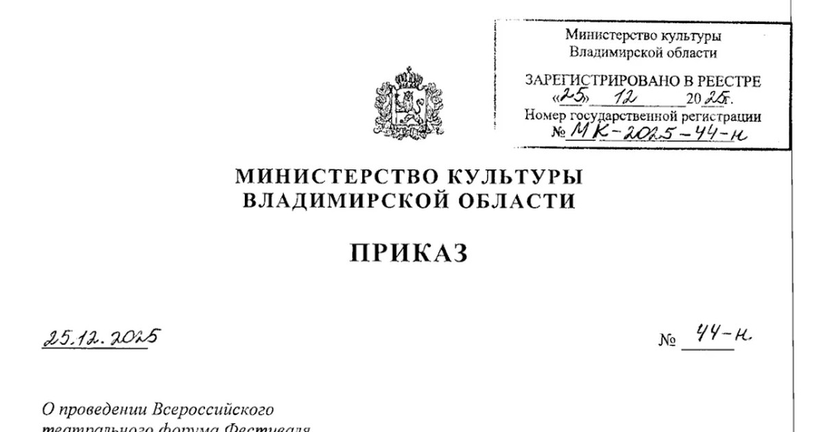 Фрагменты приказа Минкульта о театральном фестивале «У Золотых ворот»