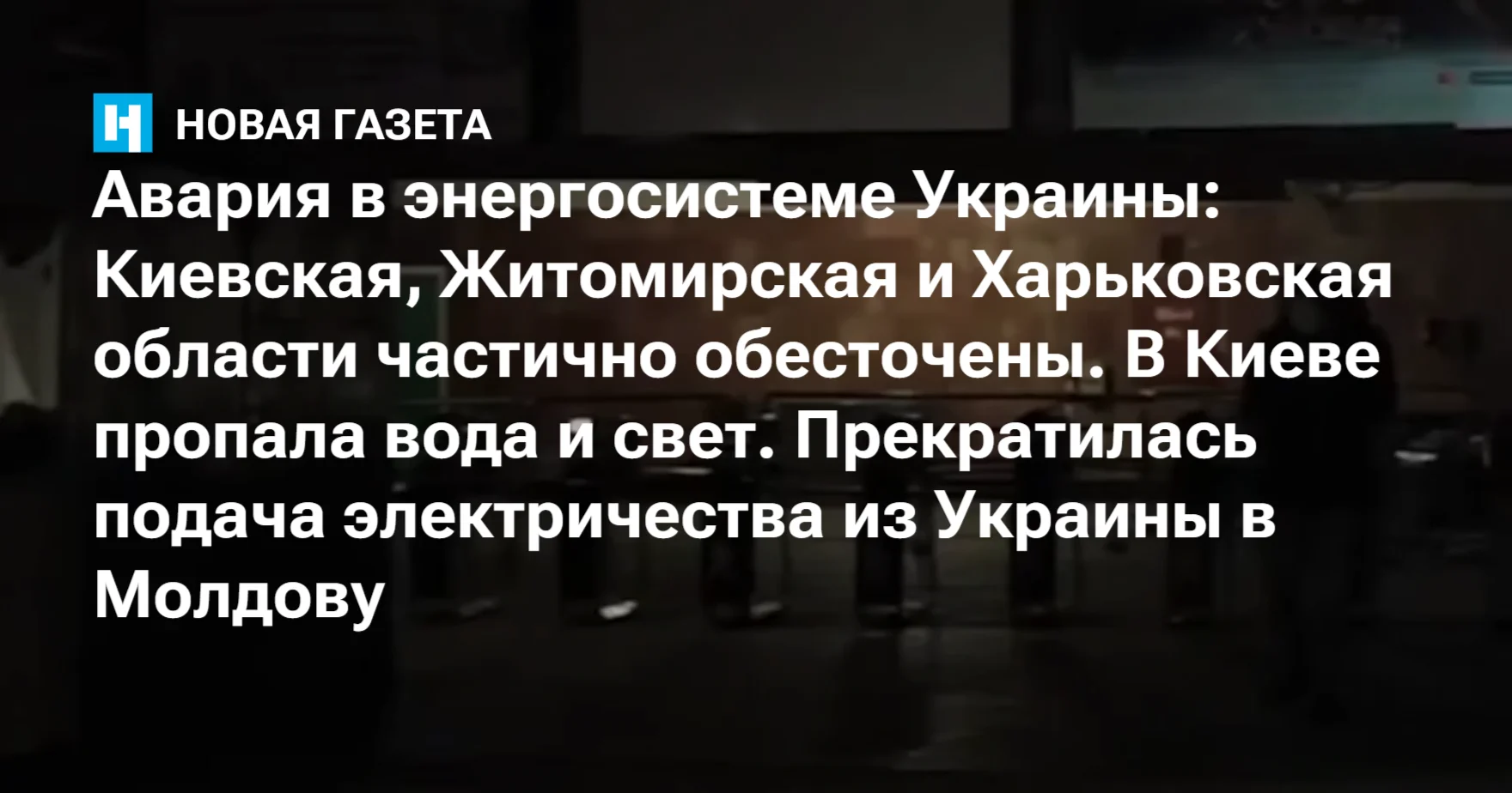 (Кишинев частично обесточен, рассказали в мэрии. Выключилось основное питание Молдавской ГРЭС, нет света в некоторых районах Молдовы.)
