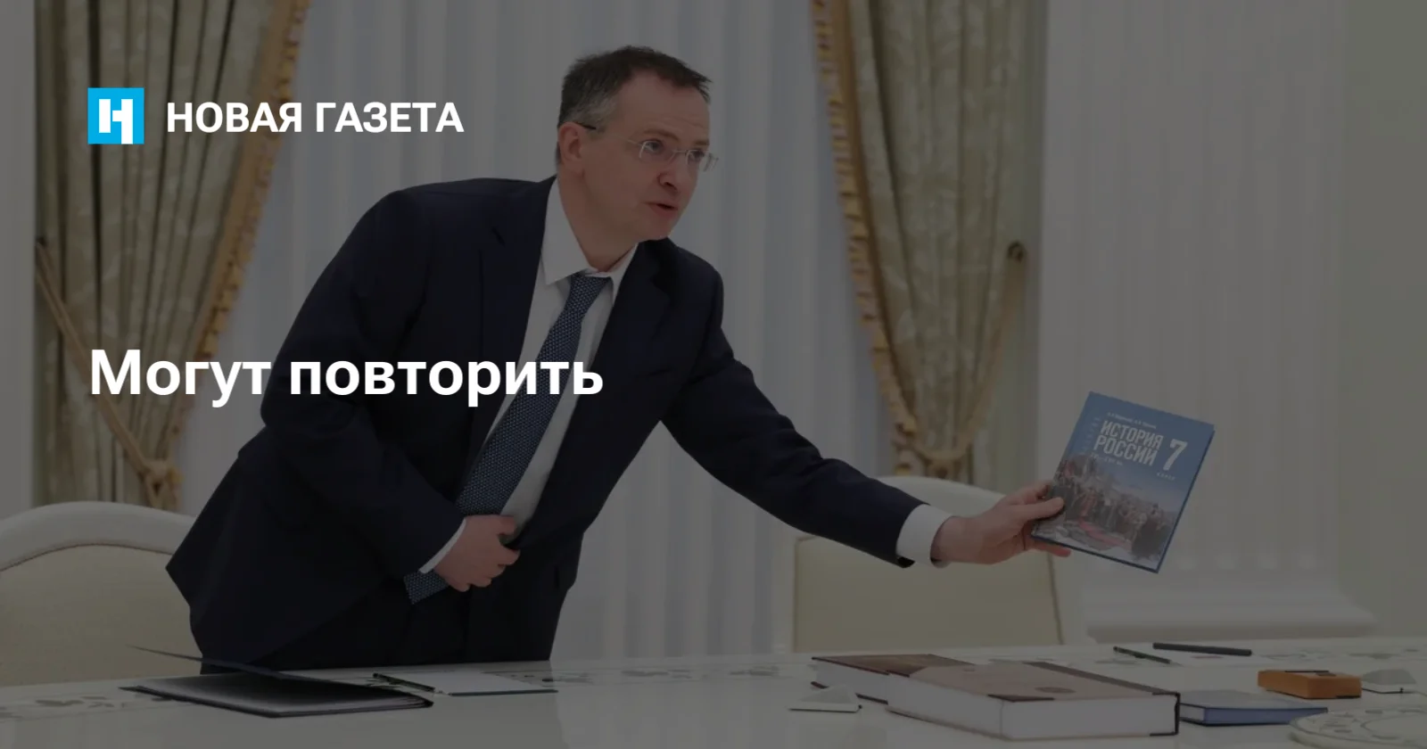 Главным редактором всех учебников истории для средней школы официально выступает помощник президента Владимир Мединский, который к тому же вроде как лично написал еще и параграф про СВО.
