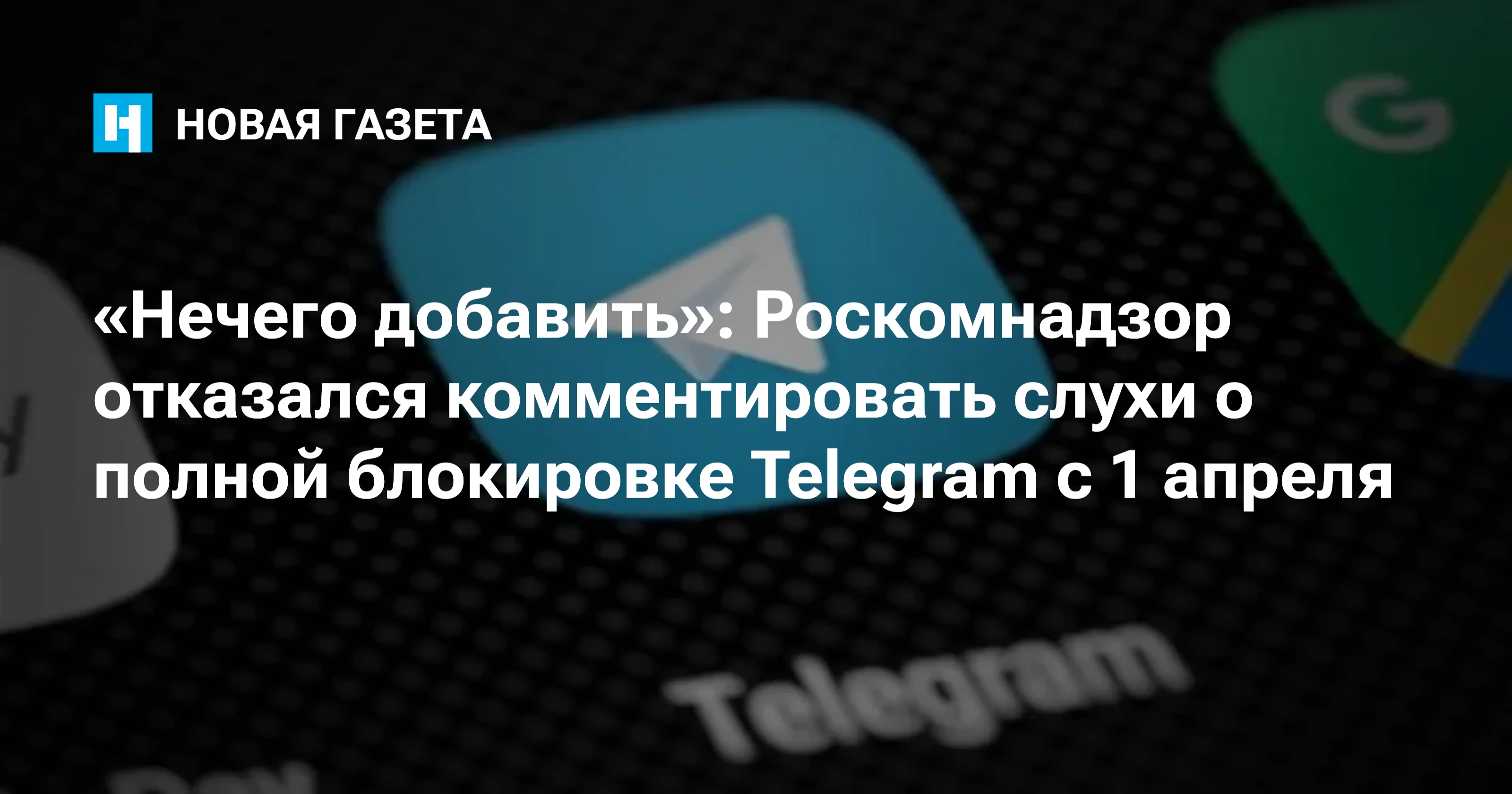- Ранее близкий к силовикам канал Baza со ссылкой на свои источники «из нескольких ведомств» сообщил, что мессенджер будет полностью заблокирован в России с 1 апреля «по аналогии с Instagram* и Facebook*».