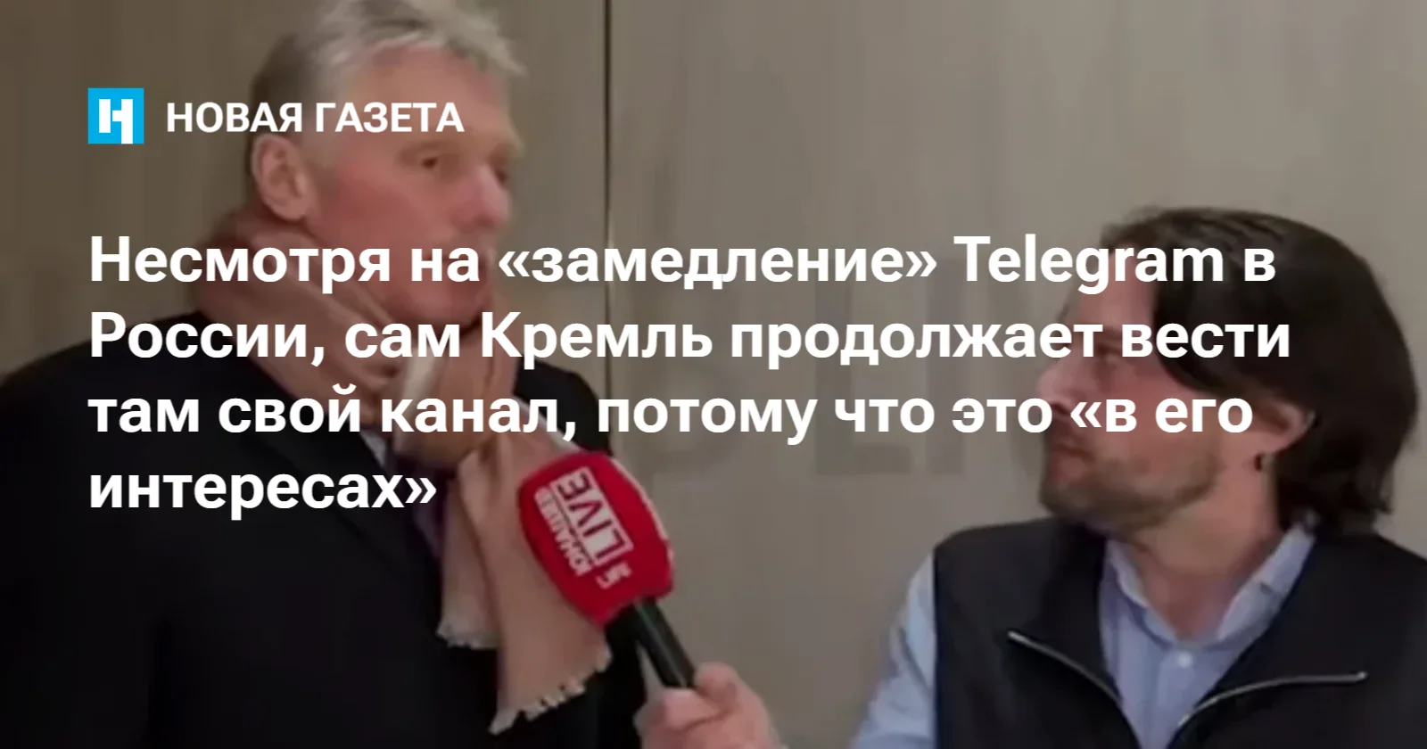 Дмитрий Песков не стал отрицать, что сотрудники пресс-службы Кремля из-за «замедления» мессенджера Telegram пользуются средствами обхода блокировок, иначе теперь туда просто не загрузить видео. А видео на официальном канале в Telegram есть.