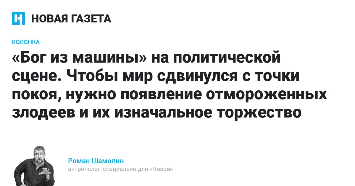«Бог из машины» — это толчок из трансцендентного, который всегда будет парадоксальным, всегда будет «вдруг». Без его появления вообще ничего существенного не случается.