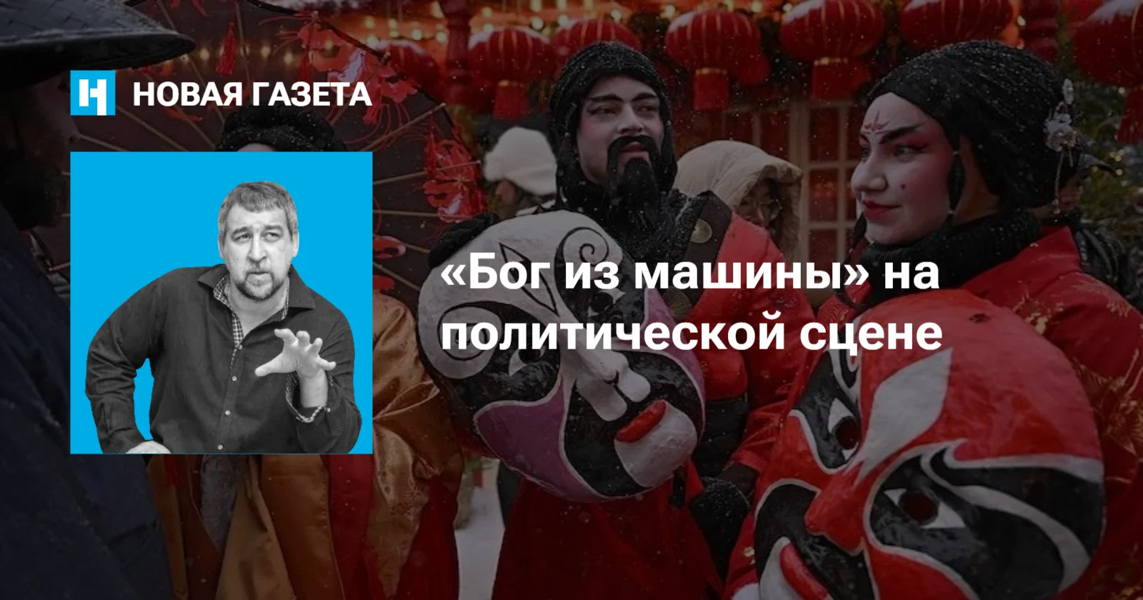 «Бог из машины» — это когда в античной театральной драме из специального сценического приспособления появляется актер в маске бога и вносит радикальные перемены в текущее действие. «Бог из машины» есть явление непредсказуемого, сверхъестественного фактора. Когда все человеческие варианты приводят в тупик, на сцену выходит он.