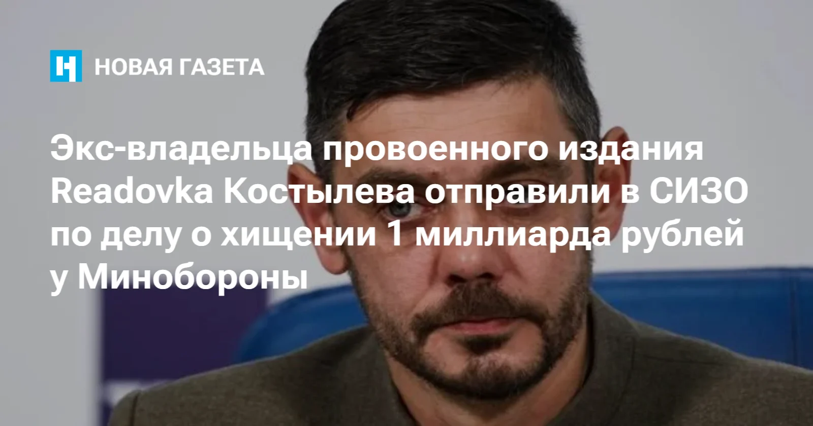 Бывшего главного редактора и основателя провластного, а затем и провоенного ресурса Readovka Алексея Костылева подозревают в хищении 1 млрд рублей у Минобороны при реализации госконтрактов. Об этом в ходе заседания Тверского суда Москвы заявила следовательница, передает РБК. Суд арестовал его на два месяца, до 25 апреля.