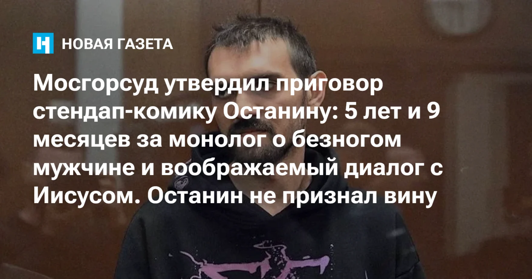 Дело против комика возбудили в марте 2025 года после доносов провластных активистов. Сначала Останина обвинили по статье о возбуждении ненависти (ч. 2 ст. 282 УК РФ). Поводом для этого стало его выступление на шоу «Стендап за 60 секунд» на YouTube. Комик пошутил про то, как в метро на него наехал мужчина с инвалидностью.