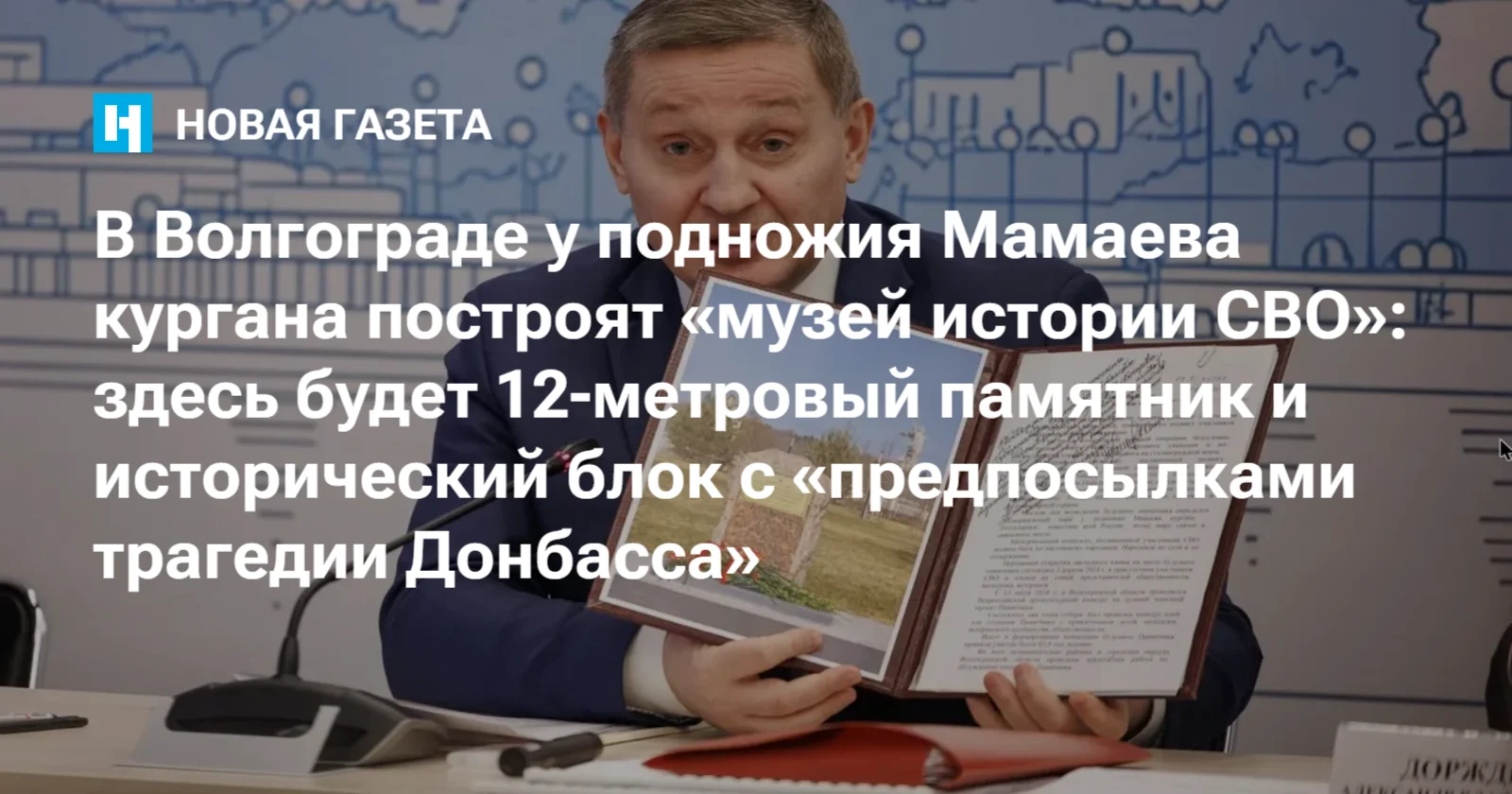 Издание напоминает, что еще в апреле 2024-го в волгоградском парке Победы установили закладной камень под будущий памятник в честь СВО. Но тогда речь шла только о скульптуре, теперь же власти обсуждают создание полноценного мемориального комплекса с музеем.