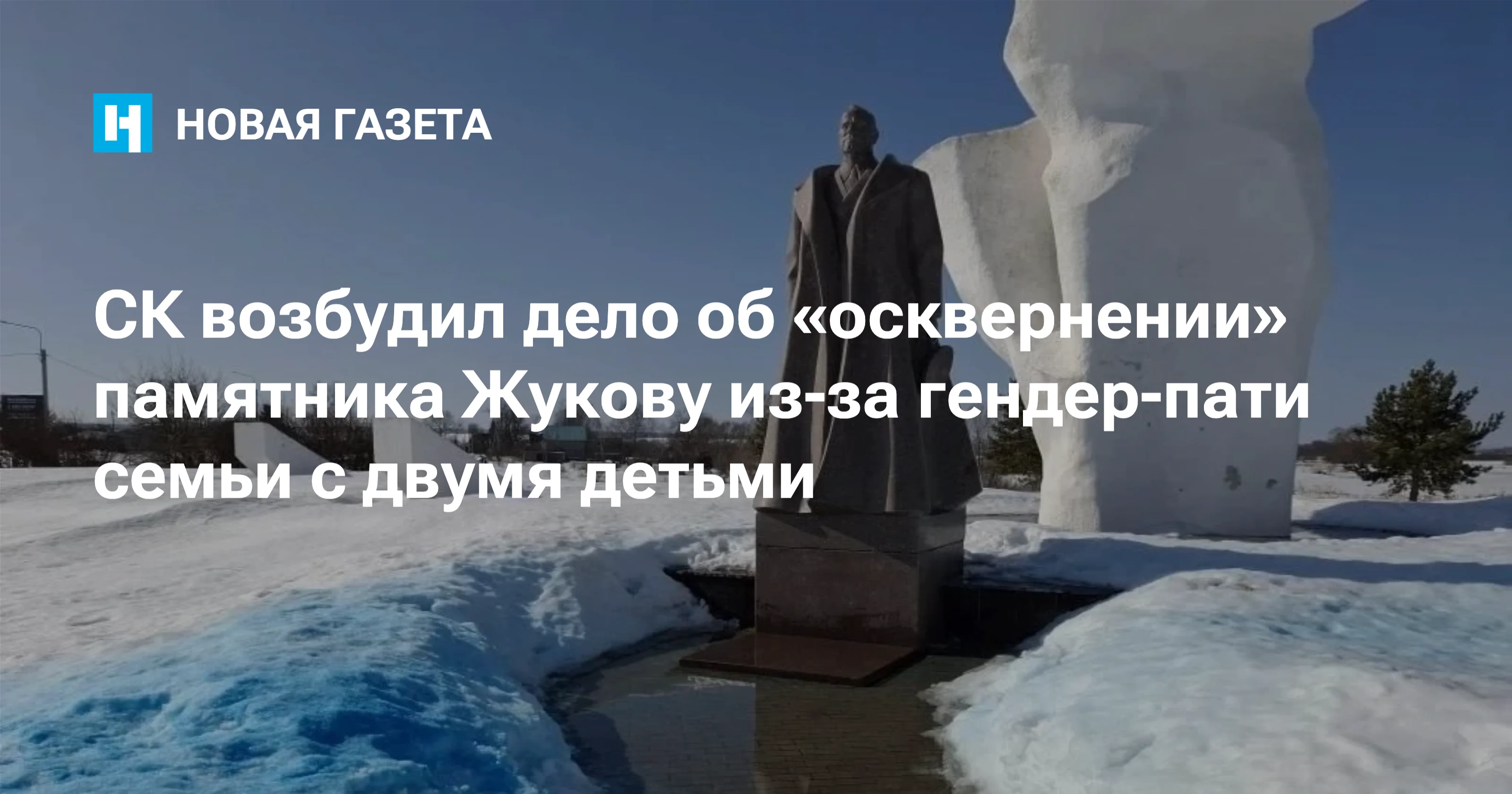 Управление Следственного комитета по Калужской области возбудило дело по статье об осквернении воинских памятников (ч. 2 ст. 243.4 УК РФ) из-за голубой краски на постаменте памятника маршалу Георгию Жукову в деревне Стрелковка, сообщается на сайте СК.