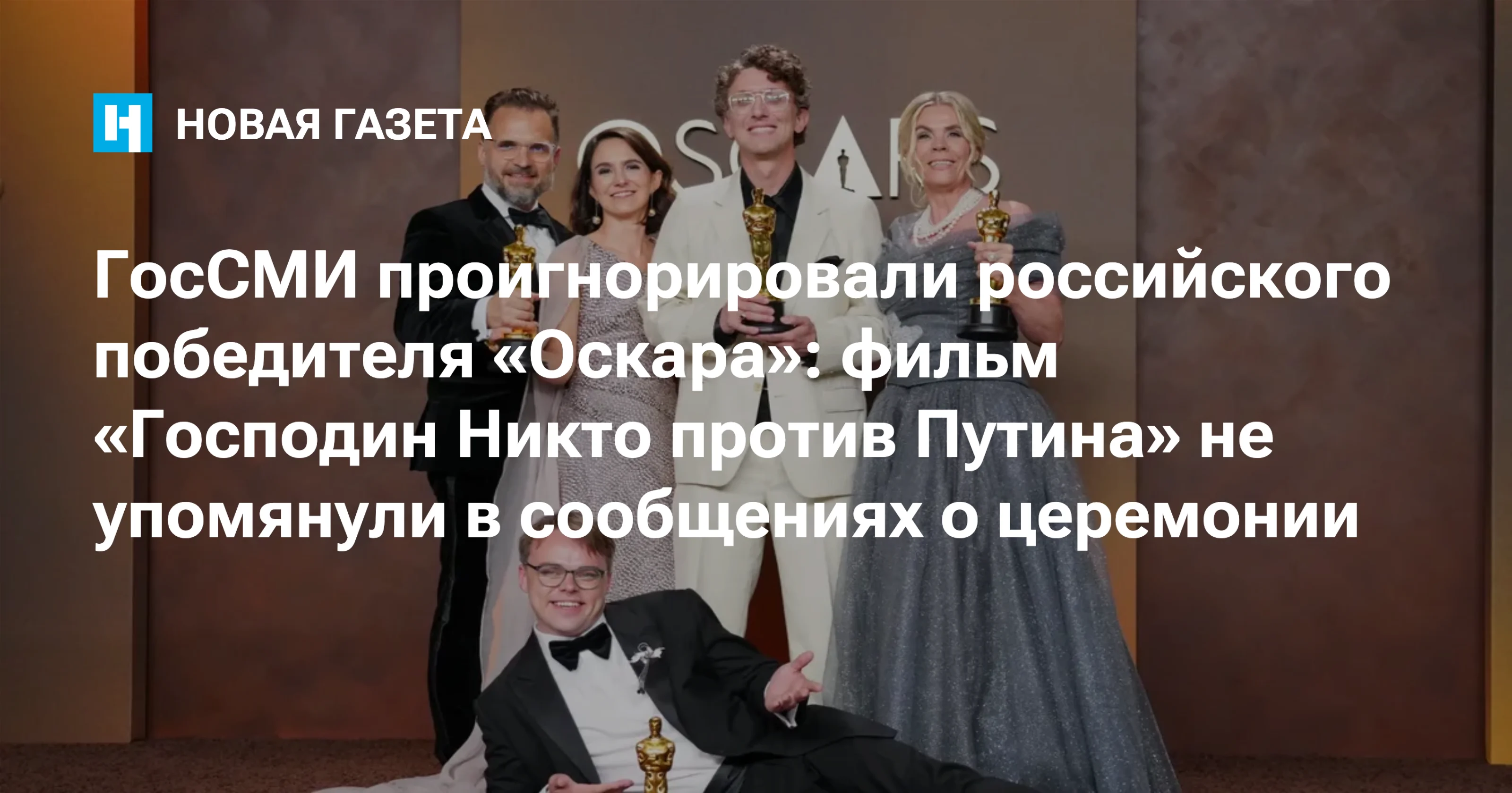 Российские провластные медиа в своих публикациях о вручении премии Американской киноакадемии не стали упоминать, что «Оскар» за лучший документальный фильм получила лента «Господин Никто против Путина» режиссера Павла Таланкина — бывшего школьного учителя из города Карабаш. На это обратила внимание «Новая газета».