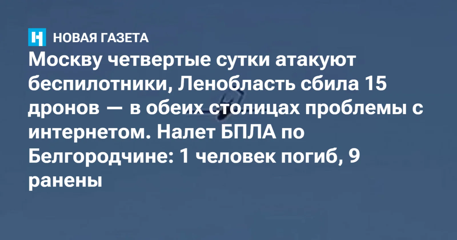 Мэр Москвы Сергей Собянин за ночь и раннее утро рассказал о 38 беспилотниках, сбитых ПВО Минобороны на подлете к столице. Вчерашний вечер тоже закончился сводками о сбитых ударных дронах. О жертвах и пострадавших Собянин не сообщал. Губернатор Московской области Андрей Воробьев в Telegram проигнорировал тему атак БПЛА, отчитавшись о рабочей поездке в один из районов.