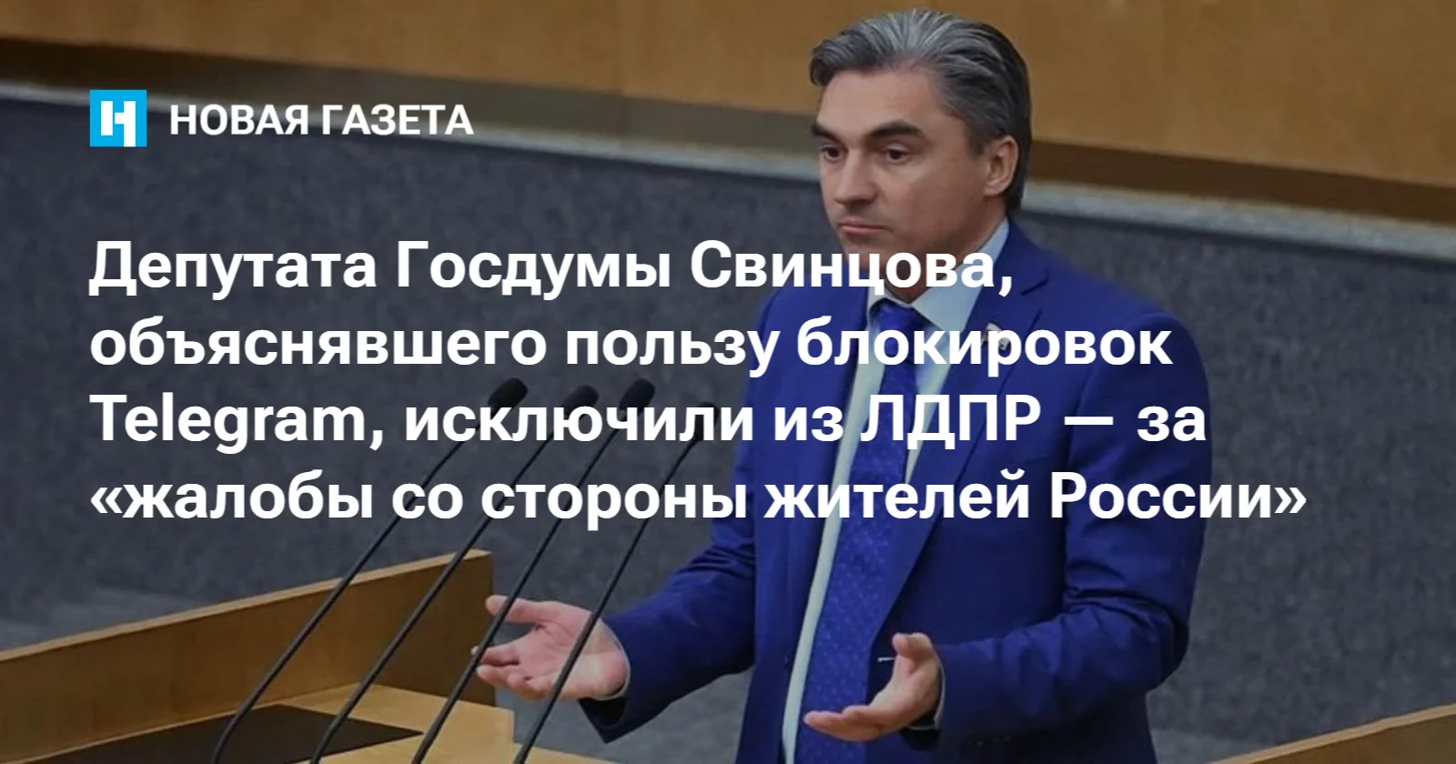 О планах ЛДПР исключить Свинцова ранее сообщали источники «Ведомостей». По их словам, это связано с комментариями депутата по вопросу блокировок в интернете, в том числе Telegram. Как рассказали источники, лидер партии Леонид Слуцкий не раз говорил Свинцову, что «это последнее предупреждение, и призывал ничего не комментировать».