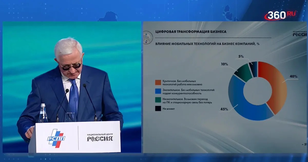 На одном из слайдов презентации, показанной во время выступления Шохина, есть результаты опроса российских компаний о влиянии мобильных технологий на их бизнес.