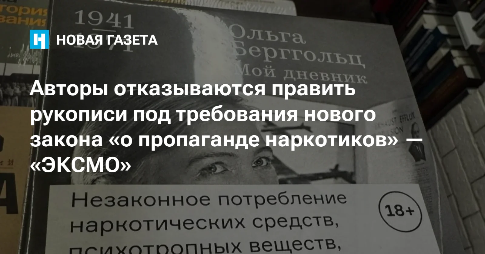 Гендиректор крупнейшего российского издательства «ЭКСМО» Евгений Капьев пожаловался, что правообладатели стали отказывать издательству, потому что не хотят вносить правки в рукописи, чего стал требовать новый закон о запрете пропаганды наркотиков. Об этом рассказал РБК со ссылкой на выступление Капьева на пресс-конференции.