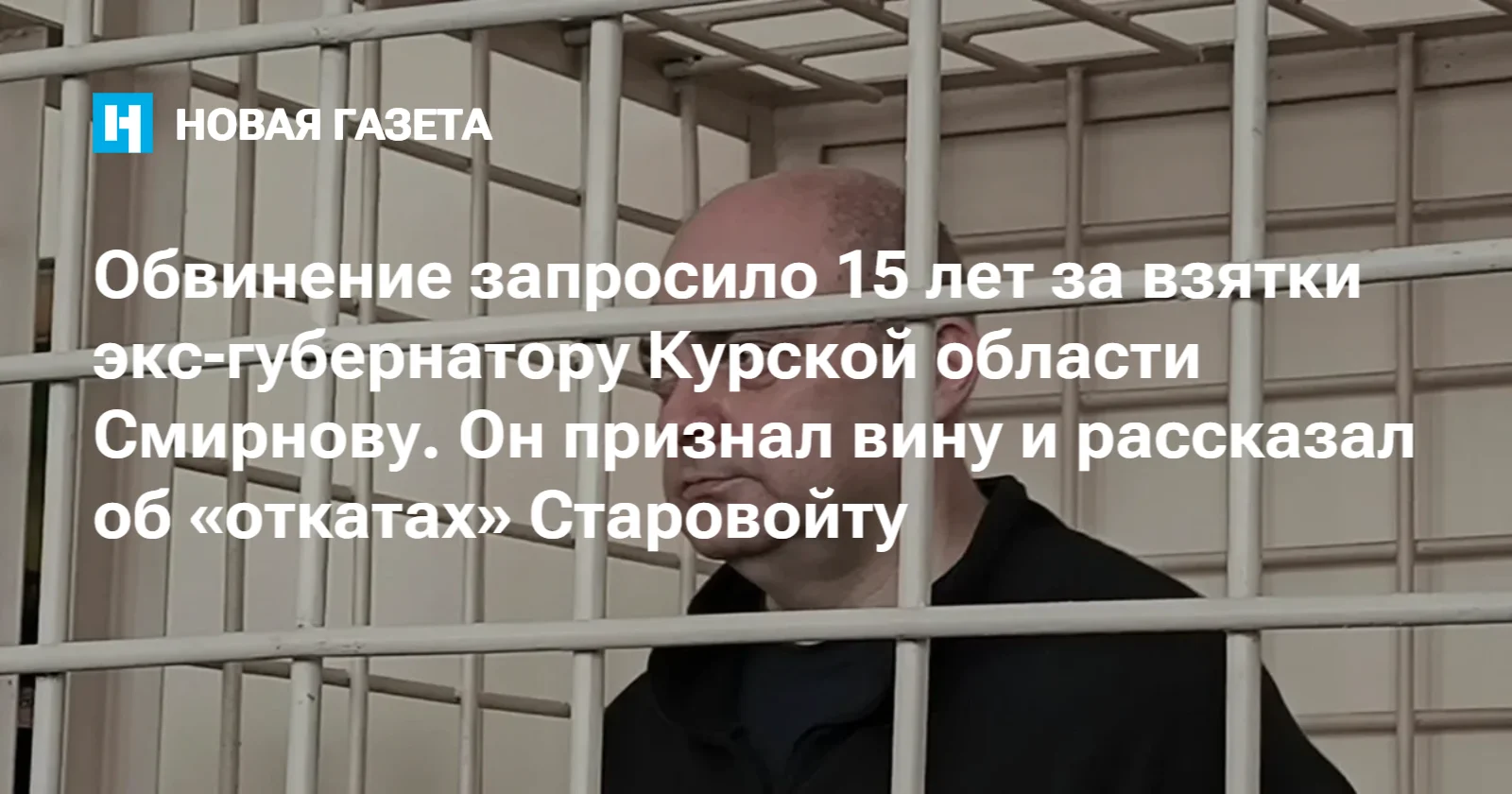 Смирнова обвиняют в получении взяток (ч. 6 ст. 290 УК РФ) при строительстве оборонительных сооружений на приграничных с Украиной территориях. По версии следствия, он получил порядка 30 млн рублей от подрядчиков. Смирнов был губернатором Курской области в мае-декабре 2024 года, его задержали в апреле 2025-го.