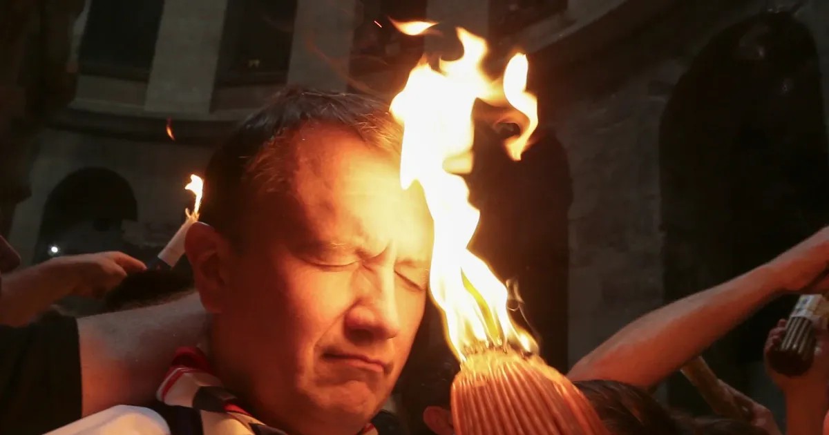 За последние 30 лет российская пропаганда — как церковная, так и политическая — приложила немало усилий для того, чтобы сделать культ Благодатного огня, зажигаемого в Великую субботу накануне Пасхи на Гробе Господнем в Иерусалиме, одной из российских «духовных скреп». Мистическая трактовка этого события такова: Господь чудесным образом зажигает огонь на Своем Гробе, чтобы показать истинность православной веры (огонь сходит только по православному, «старому» календарю). Первые несколько минут Благодатный огонь не обжигает, а в тот год, когда он не сойдет, в мире воцарится Антихрист. Первые письменные источники о том, что Благодатный огонь не зажигается, а «сходит с неба», датируются IX веком, когда Иерусалим находился под контролем исламского халифата.