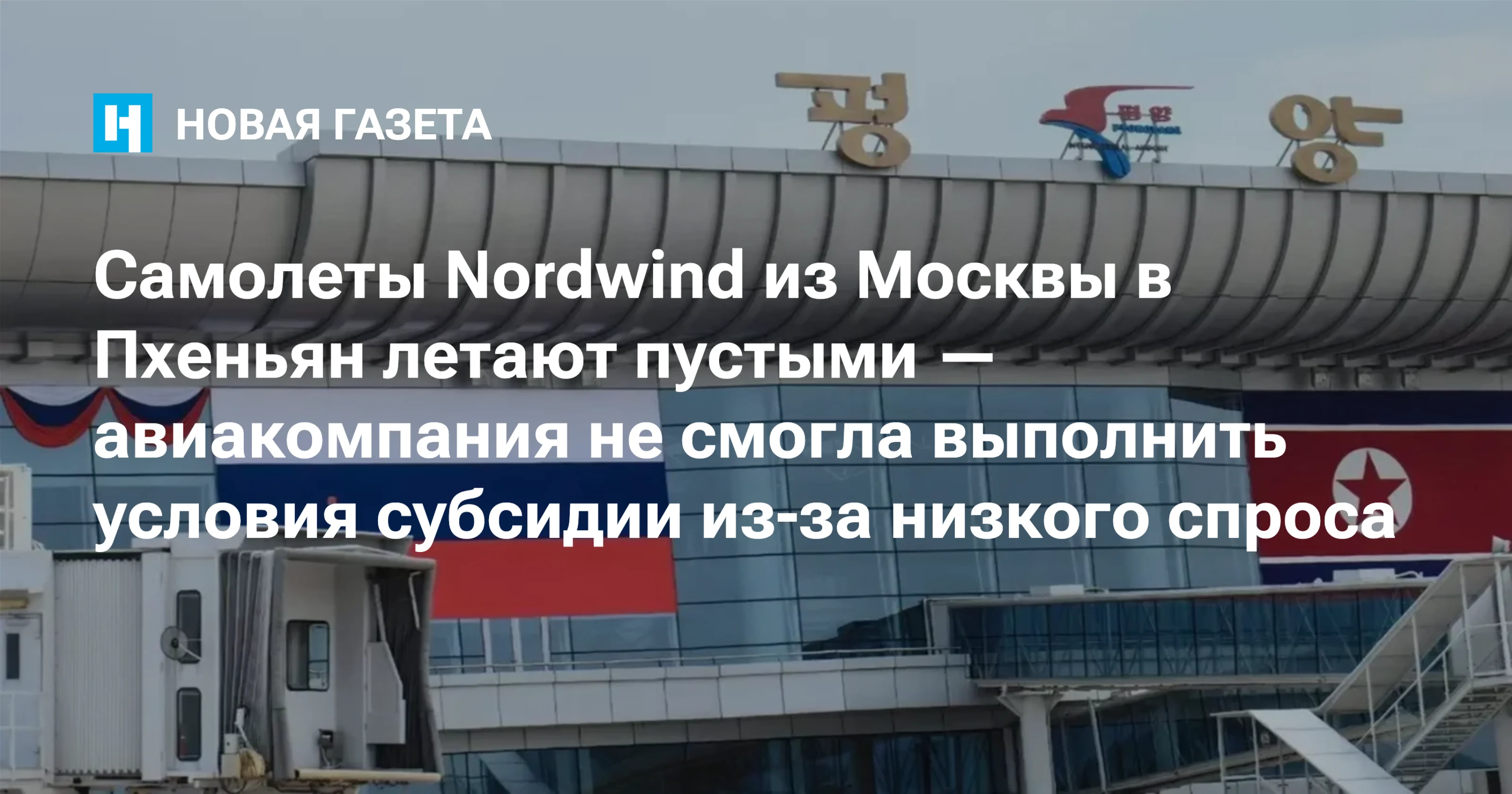Рейсы авиакомпании Nordwind по маршруту Москва-Пхеньян не пользуются популярностью у туристов: перевозчик получил от правительства лишь 40,8 млн руб субсидий вместо изначально запланированных 124,4 млн, пишет «Коммерсант».