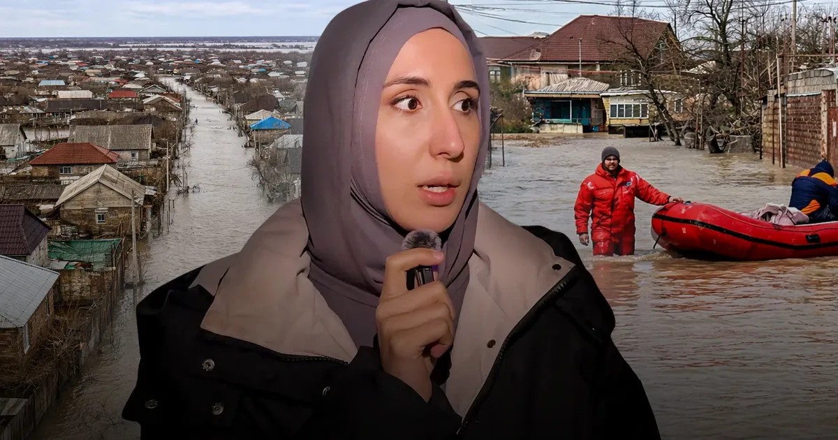 Журналист Диана Асанбекова показывает, как устроен пункт сбора гуманитарной помощи в Каспийске.