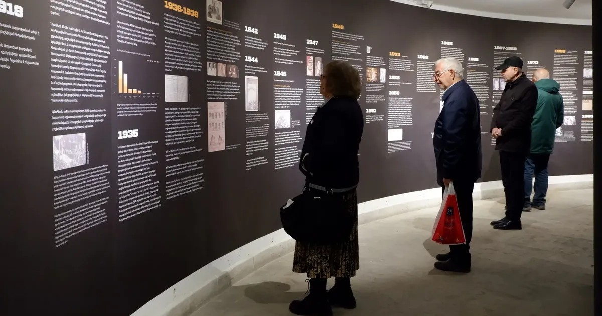 Вдоль стены музея — информация и фотографии в хронологическом порядке. Точка отсчета — 1915 год, геноцид армян в Османской империи. Без этого события невозможно понять специфику советских репрессий в Армении. Армяне, бежавшие от геноцида в разные страны, после Второй мировой войны, поверив Сталину, приехали в Советскую Армению. Многих из них в 1949 году отправят в Сибирь в ходе самой массовой из сталинских депортаций армян. Кроме того, борьба за право помнить о жертвах геноцида в 1960-е годы станет одним из главных требований подпольных общественных инициатив, участников которых репрессировали в позднесоветские годы.