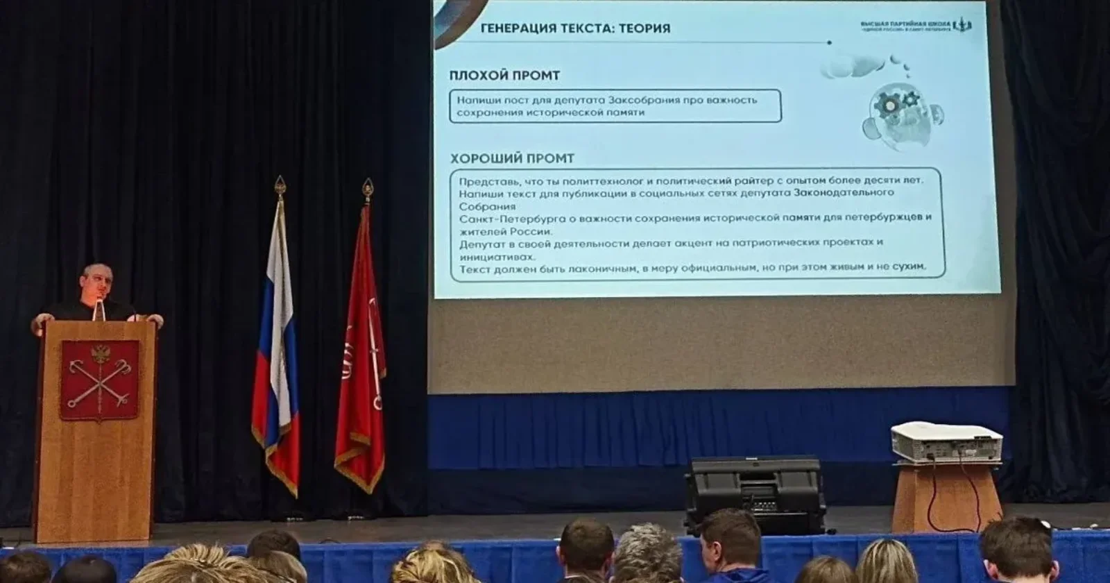 В Петербурге единороссам прочитали лекцию о том, как использовать ИИ для написания постов в соцсетях. В примере лектора был приведен запрос к нейросети о важности сохранения исторической памяти для петербуржцев и жителей России. На отчет о лекции обратила внимание «Ротонда».