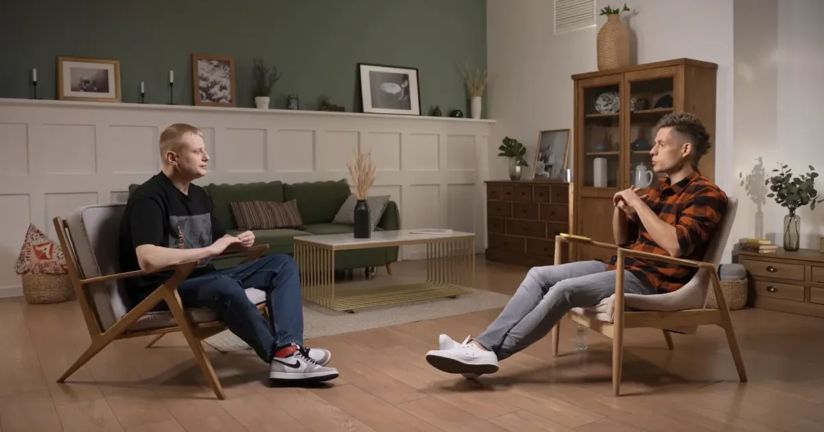 Кадр из интервью комика Славы Комиссаренко — Юрию Дудю*