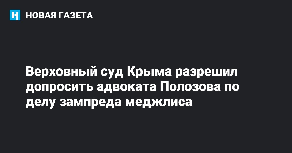 Судья Верховного суда Крыма Юрий Латынин разрешил допросить адвоката Николая Полозова в качестве свидетеля по делу зампреда меджлиса крымскоатарского народа (организация запрещена в России) Ильми Умерова.