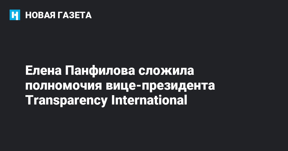 Председатель правления «Трансперенси Интернешнл-Р» Елена Панфилова сложила полномочия вице-президента и исполнительного директора Transparency International. Об этом Панфилова сообщила спецкору «Новой» Илье Азару.